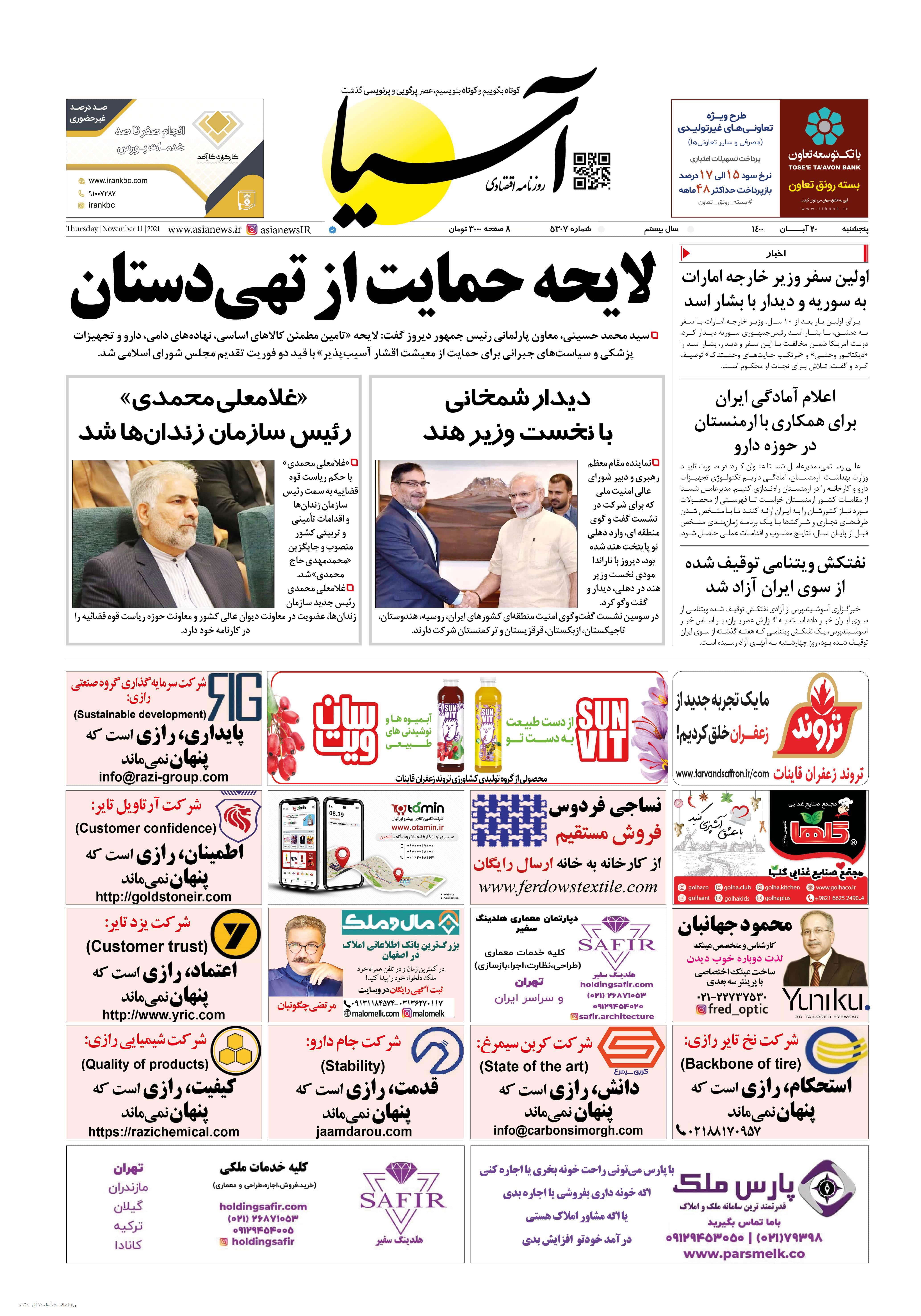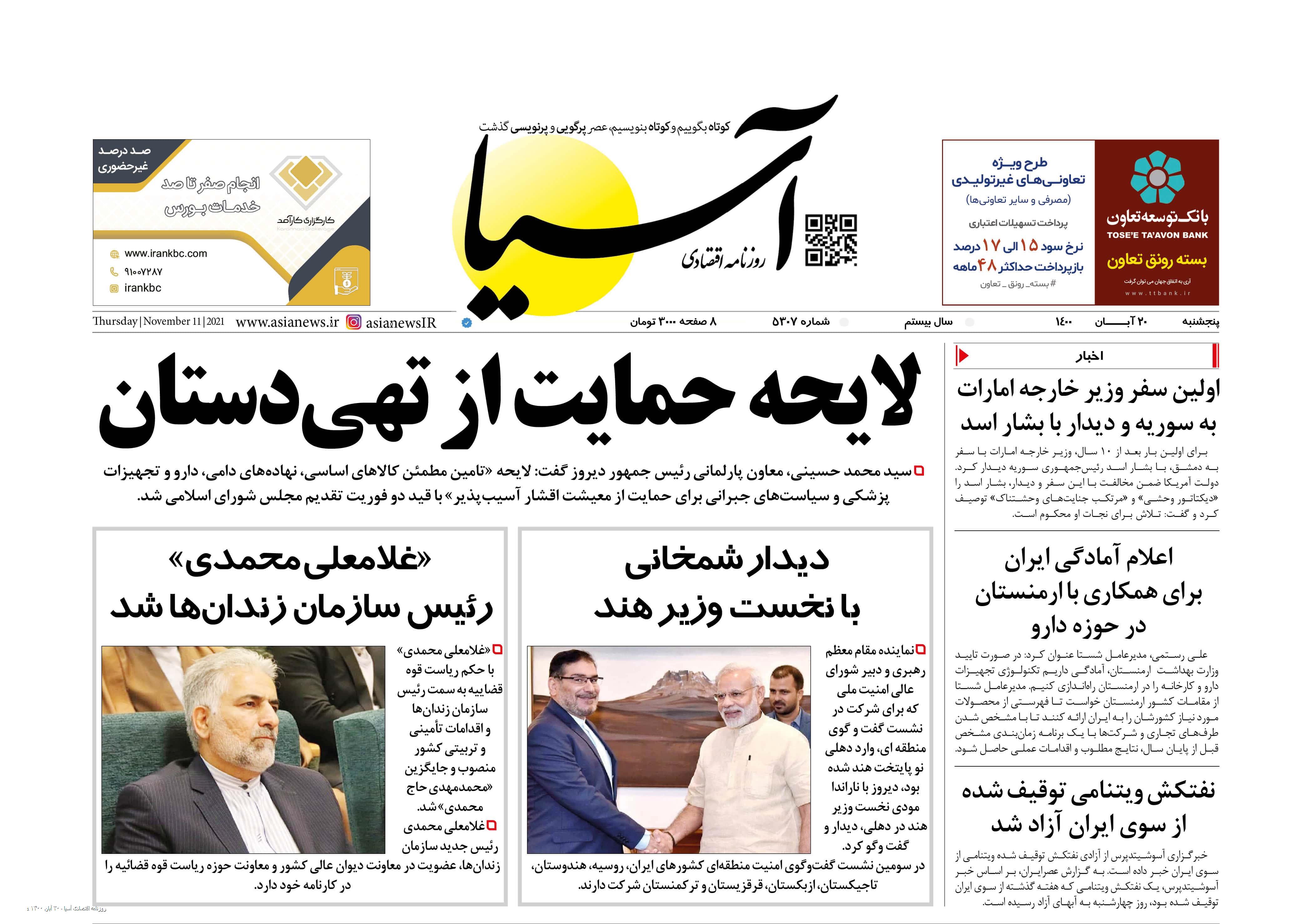 روزنامه اقتصادی آسیا - ۲۰ آبان ۱۴۰۰ ۱۹ آبان ۱۴۰۰ https://www.asianewsiran.com/u/c0i آسیانیوز ایران هیچگونه مسولیتی در قبال نظرات کاربران ندارد. میانگین امتیاز کاربران: 0.0 (0 رای) 12345 امتیاز 12345 برای امتیاز باید عدد وارد کنید ایمیل را وارد کنید ایمیل صحیح نیست ایمیل نمایش داده شود. تعداد کاراکتر باقیمانده: 1000 نظر خود را وارد کنید بازخوانی بازخوانی پس از انتشار این نظر، به من اطلاع داده شود. ارسال توجه : نظرات بیان شده در یادداشتهایی که منتشر میکنیم، بیانگر عقیده نگارنده آن است و لزوماً دیدگاه مدیران وبسایت آسیانیوز و آسیانیوز ایران نمیباشد. سردبیر
