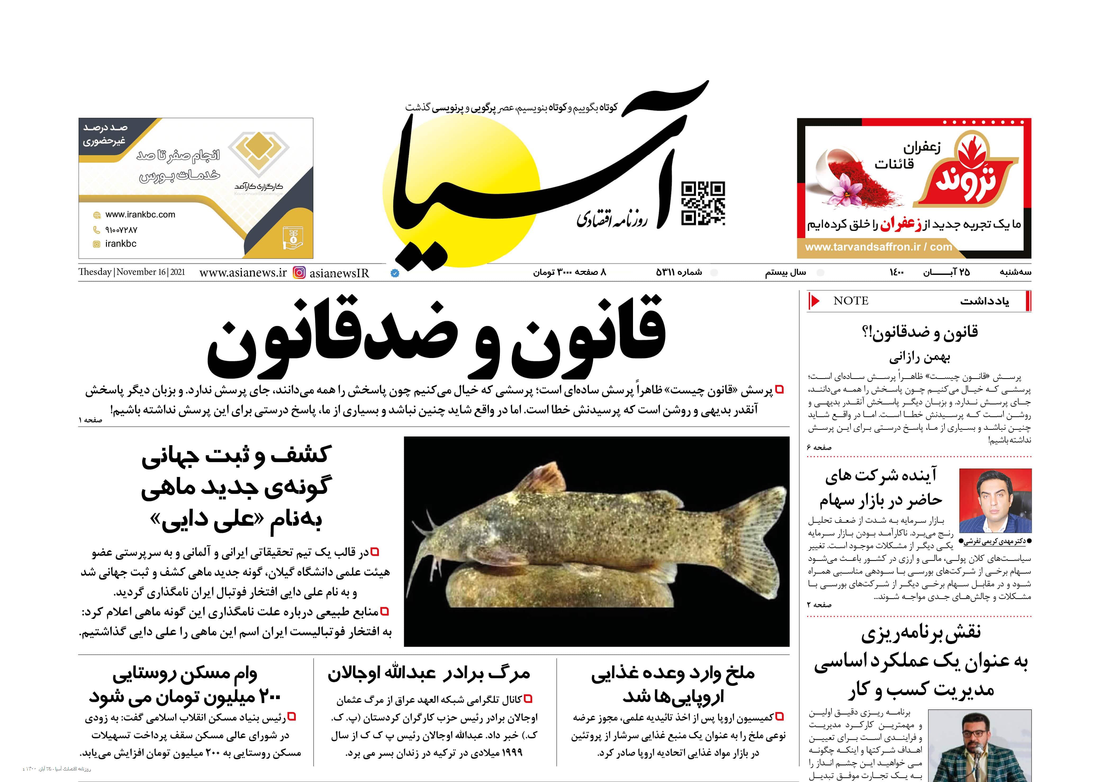 روزنامه اقتصادی آسیا - ۲۵ آبان ۱۴۰۰ ۲۴ آبان ۱۴۰۰ https://www.asianewsiran.com/u/bo6 آسیانیوز ایران هیچگونه مسولیتی در قبال نظرات کاربران ندارد. میانگین امتیاز کاربران: 0.0 (0 رای) 12345 امتیاز 12345 برای امتیاز باید عدد وارد کنید ایمیل را وارد کنید ایمیل صحیح نیست ایمیل نمایش داده شود. تعداد کاراکتر باقیمانده: 1000 نظر خود را وارد کنید بازخوانی بازخوانی پس از انتشار این نظر، به من اطلاع داده شود. ارسال توجه : نظرات بیان شده در یادداشتهایی که منتشر میکنیم، بیانگر عقیده نگارنده آن است و لزوماً دیدگاه مدیران وبسایت آسیانیوز و آسیانیوز ایران نمیباشد. سردبیر