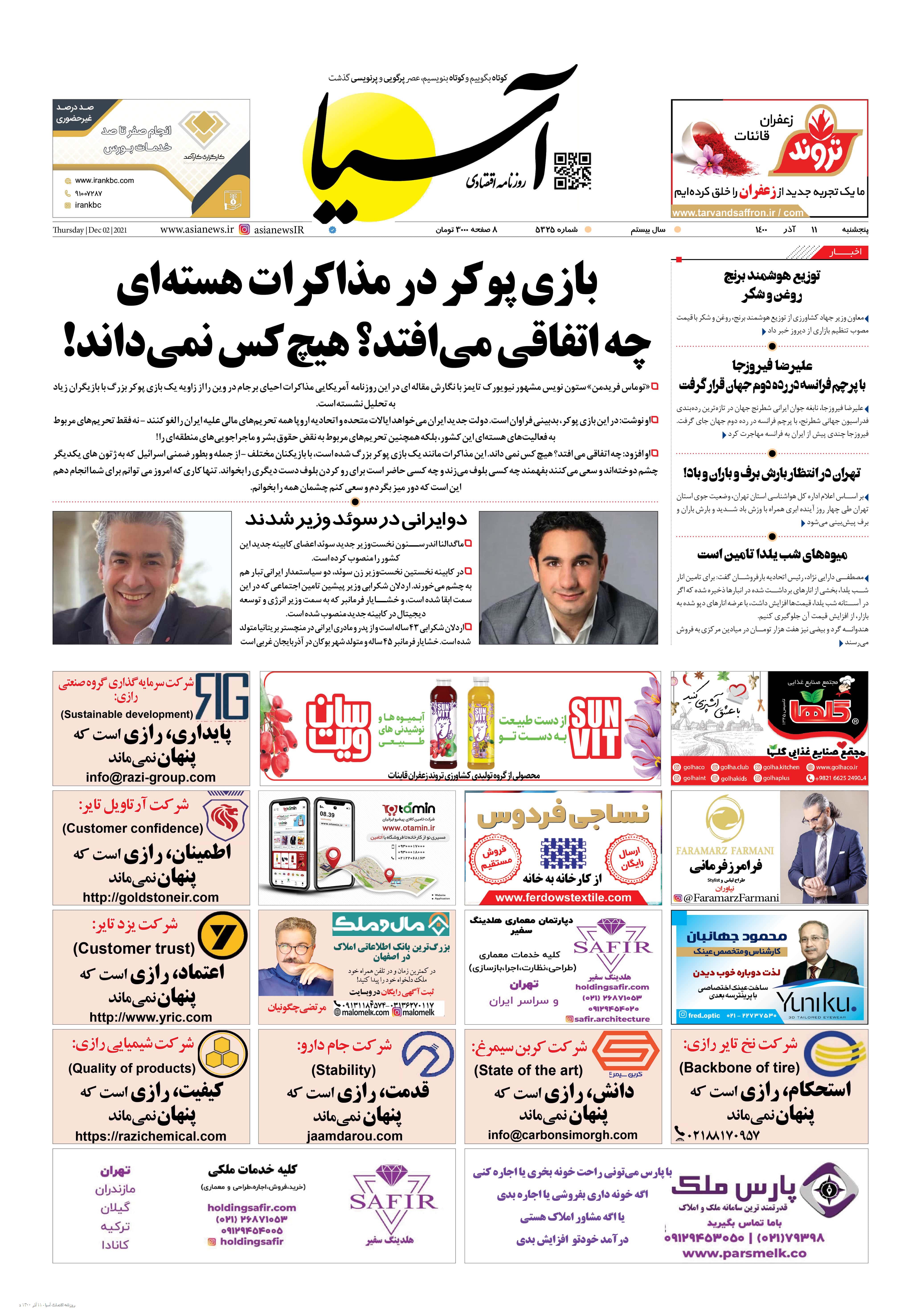 روزنامه اقتصادی آسیا - ۱۱ آذر ۱۴۰۰ ۱۰ آذر ۱۴۰۰ https://www.asianewsiran.com/u/bvk آسیانیوز ایران هیچگونه مسولیتی در قبال نظرات کاربران ندارد. میانگین امتیاز کاربران: 0.0 (0 رای) 12345 امتیاز 12345 برای امتیاز باید عدد وارد کنید ایمیل را وارد کنید ایمیل صحیح نیست ایمیل نمایش داده شود. تعداد کاراکتر باقیمانده: 1000 نظر خود را وارد کنید بازخوانی بازخوانی پس از انتشار این نظر، به من اطلاع داده شود. ارسال توجه : نظرات بیان شده در یادداشتهایی که منتشر میکنیم، بیانگر عقیده نگارنده آن است و لزوماً دیدگاه مدیران وبسایت آسیانیوز و آسیانیوز ایران نمیباشد. سردبیر