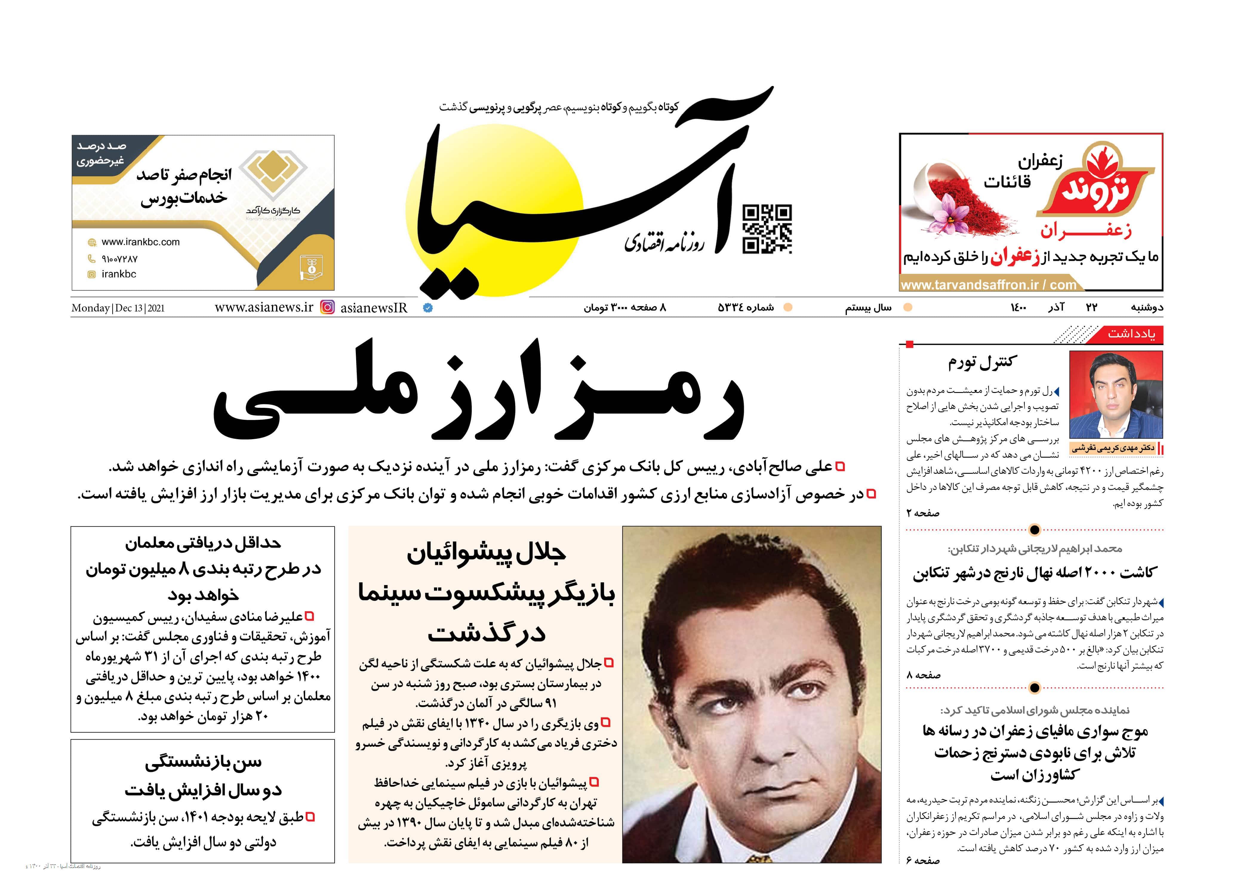 روزنامه اقتصادی آسیا - ۲۲ آذر ۱۴۰۰