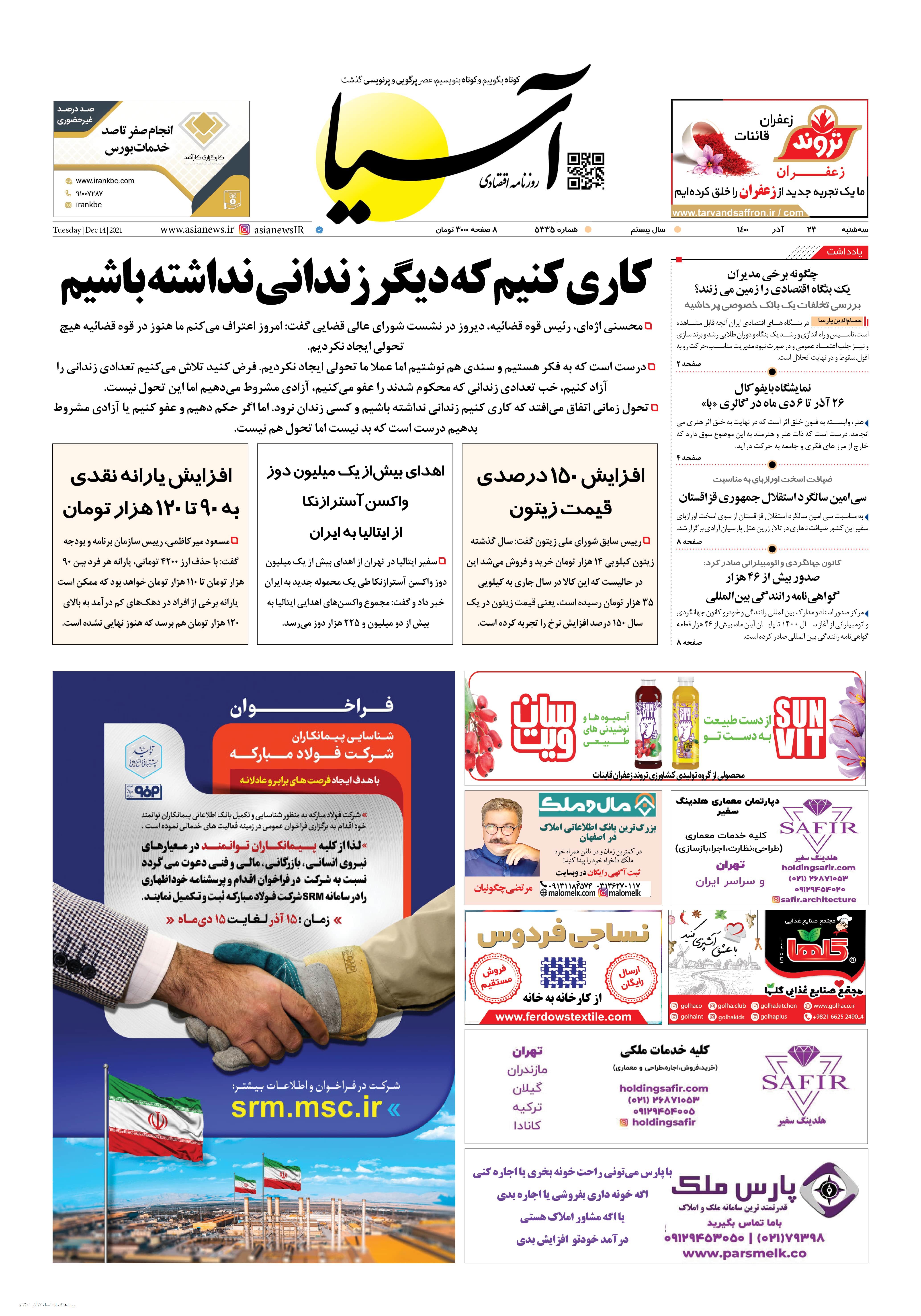 روزنامه اقتصادی آسیا - ۲۲ آذر ۱۴۰۰ ۲۲ آذر ۱۴۰۰ https://www.asianewsiran.com/u/ccz آسیانیوز ایران هیچگونه مسولیتی در قبال نظرات کاربران ندارد. میانگین امتیاز کاربران: 0.0 (0 رای) 12345 امتیاز 12345 برای امتیاز باید عدد وارد کنید ایمیل را وارد کنید ایمیل صحیح نیست ایمیل نمایش داده شود. تعداد کاراکتر باقیمانده: 1000 نظر خود را وارد کنید بازخوانی بازخوانی پس از انتشار این نظر، به من اطلاع داده شود. ارسال توجه : نظرات بیان شده در یادداشتهایی که منتشر میکنیم، بیانگر عقیده نگارنده آن است و لزوماً دیدگاه مدیران وبسایت آسیانیوز و آسیانیوز ایران نمیباشد. سردبیر