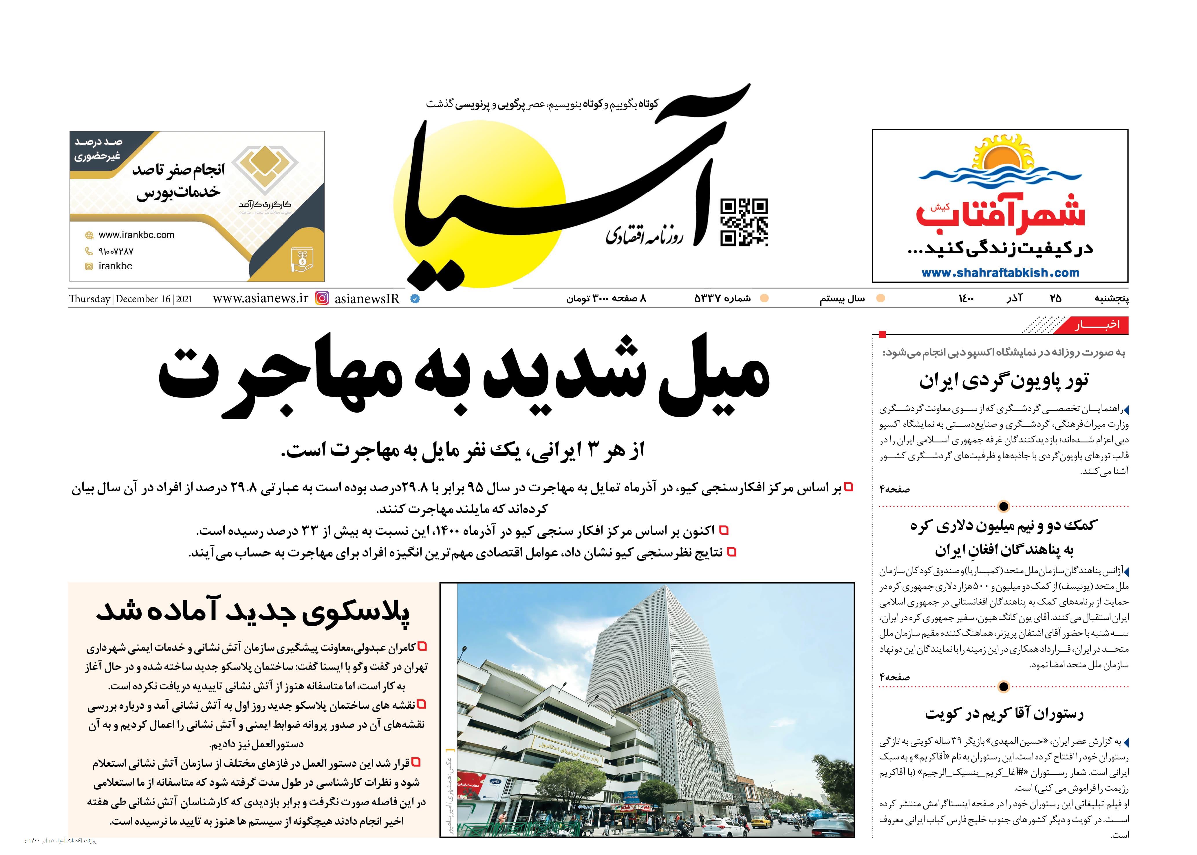 روزنامه اقتصادی آسیا - ۲۵ آذر ۱۴۰۰ ۲۴ آذر ۱۴۰۰ https://www.asianewsiran.com/u/c5q آسیانیوز ایران هیچگونه مسولیتی در قبال نظرات کاربران ندارد. میانگین امتیاز کاربران: 0.0 (0 رای) 12345 امتیاز 12345 برای امتیاز باید عدد وارد کنید ایمیل را وارد کنید ایمیل صحیح نیست ایمیل نمایش داده شود. تعداد کاراکتر باقیمانده: 1000 نظر خود را وارد کنید بازخوانی بازخوانی پس از انتشار این نظر، به من اطلاع داده شود. ارسال توجه : نظرات بیان شده در یادداشتهایی که منتشر میکنیم، بیانگر عقیده نگارنده آن است و لزوماً دیدگاه مدیران وبسایت آسیانیوز و آسیانیوز ایران نمیباشد. سردبیر