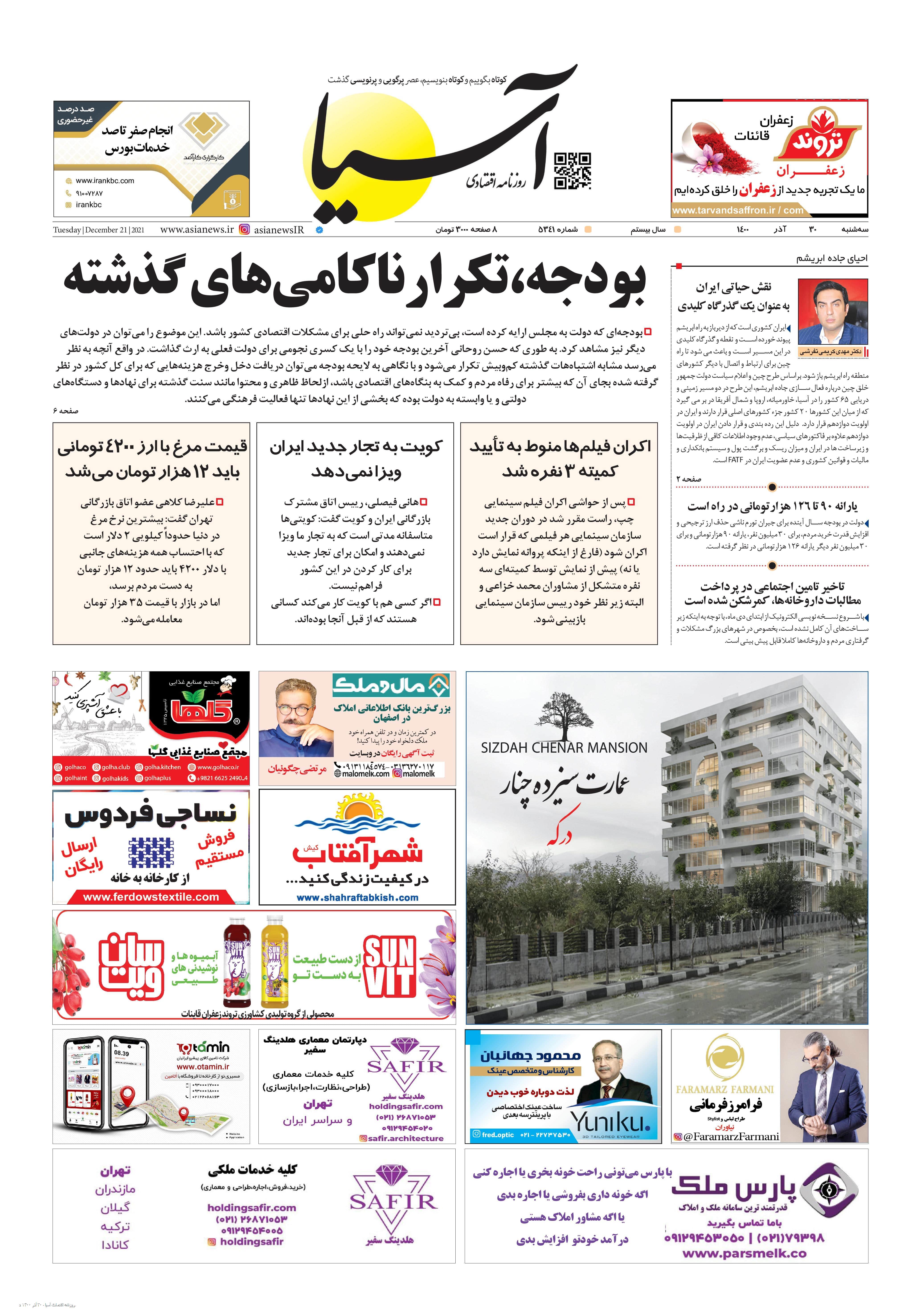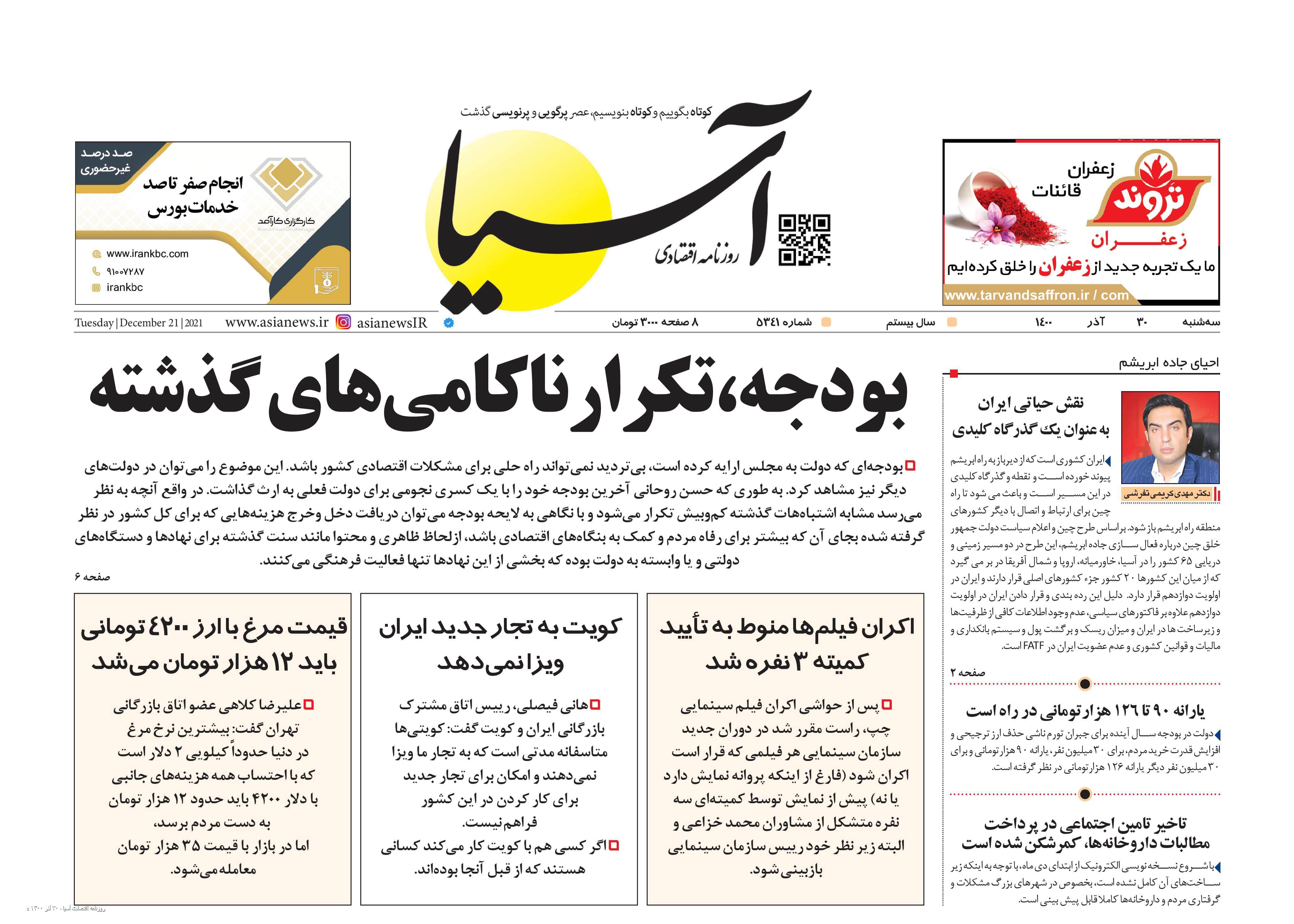 روزنامه اقتصادی آسیا - ۳۰ آذر ۱۴۰۰