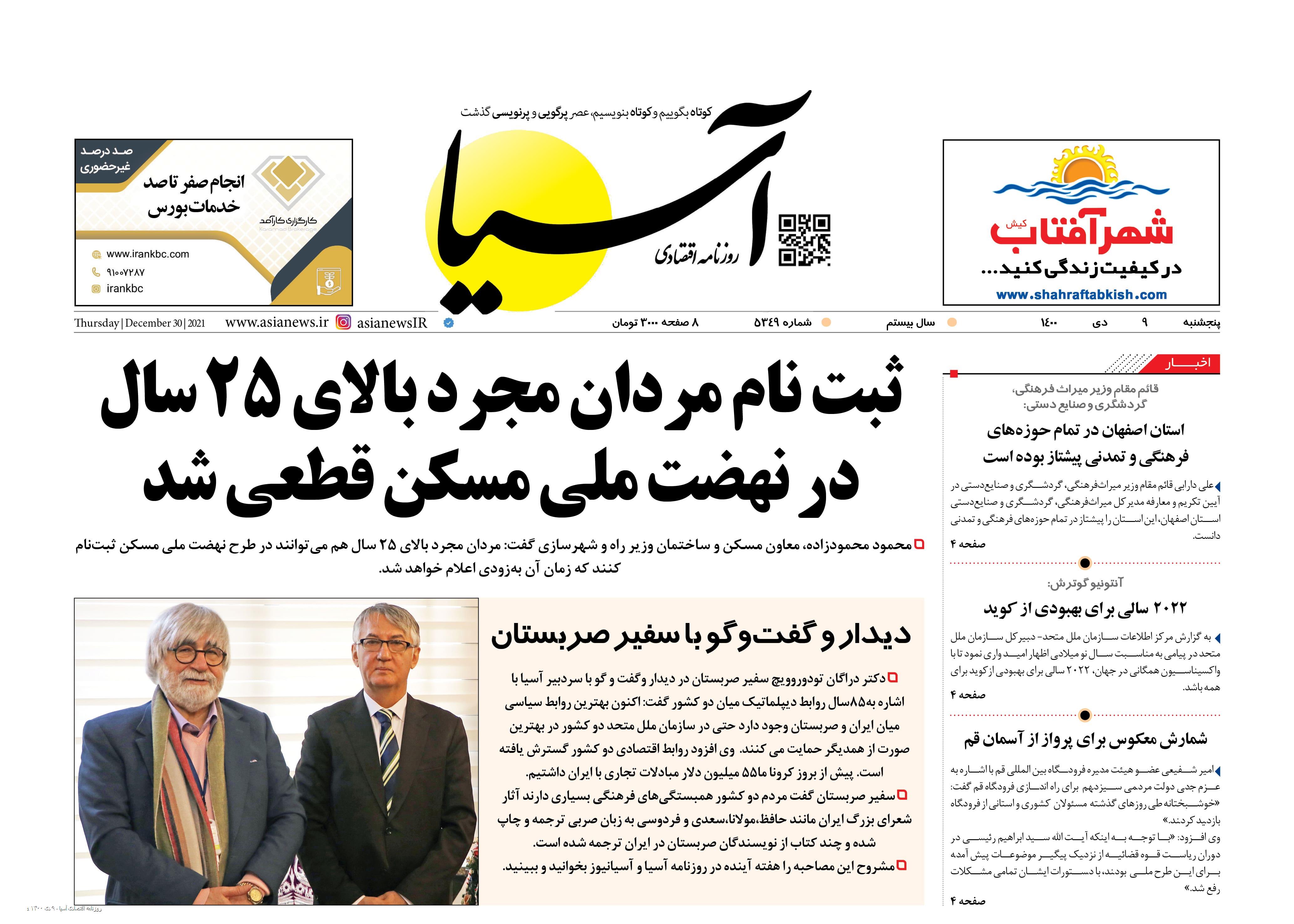 روزنامه اقتصادی آسیا - ۹ دی ۱۴۰۰ ۸ دی ۱۴۰۰ https://www.asianewsiran.com/u/bsn آسیانیوز ایران هیچگونه مسولیتی در قبال نظرات کاربران ندارد. میانگین امتیاز کاربران: 0.0 (0 رای) 12345 امتیاز 12345 برای امتیاز باید عدد وارد کنید ایمیل را وارد کنید ایمیل صحیح نیست ایمیل نمایش داده شود. تعداد کاراکتر باقیمانده: 1000 نظر خود را وارد کنید بازخوانی بازخوانی پس از انتشار این نظر، به من اطلاع داده شود. ارسال توجه : نظرات بیان شده در یادداشتهایی که منتشر میکنیم، بیانگر عقیده نگارنده آن است و لزوماً دیدگاه مدیران وبسایت آسیانیوز و آسیانیوز ایران نمیباشد. سردبیر