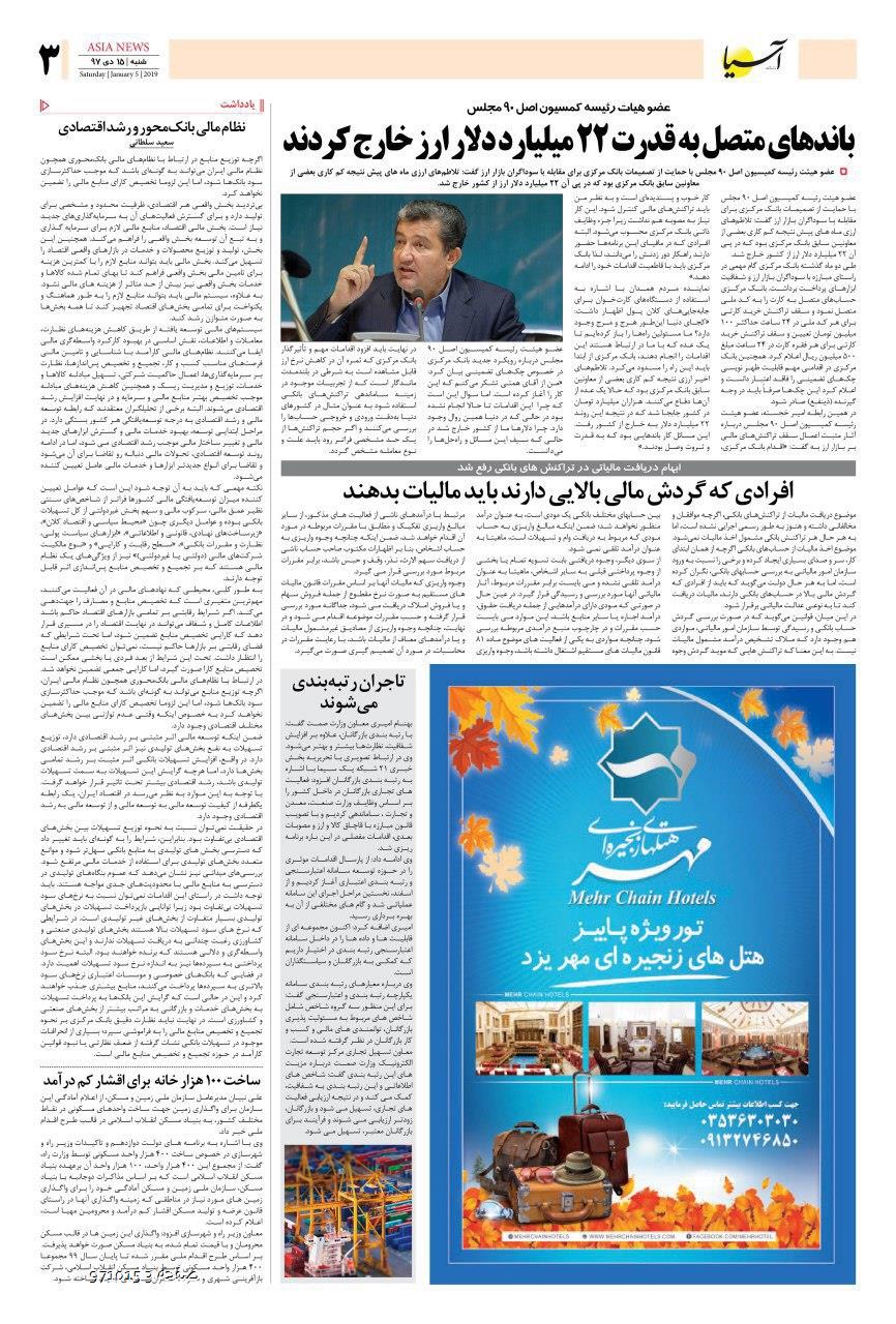 روزنامه اقتصادی آسیا - 15 دی 1397