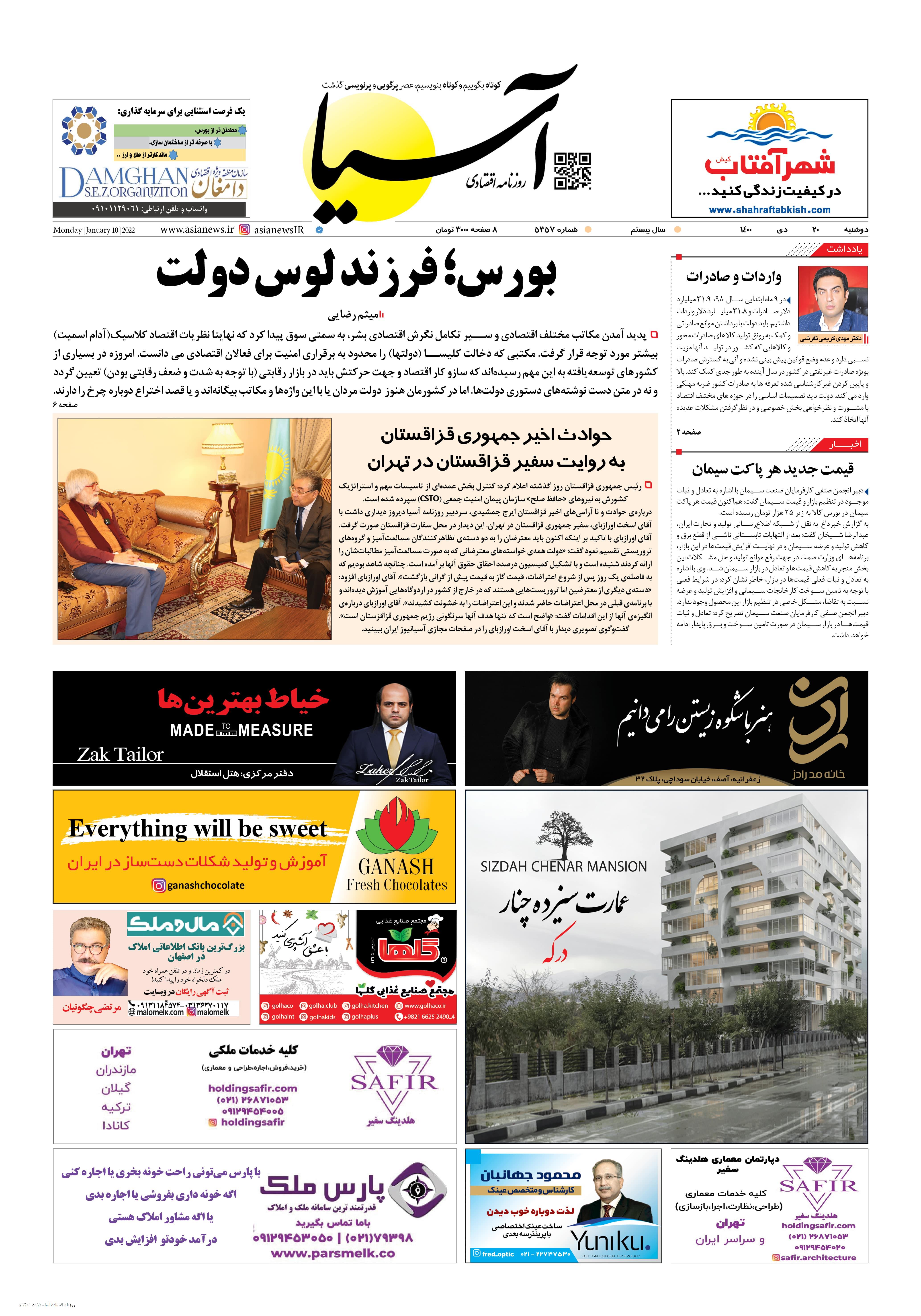 روزنامه اقتصادی آسیا - ۲۰ دی ۱۴۰۰ ۱۹ دی ۱۴۰۰ https://www.asianewsiran.com/u/c82 آسیانیوز ایران هیچگونه مسولیتی در قبال نظرات کاربران ندارد. میانگین امتیاز کاربران: 0.0 (0 رای) 12345 امتیاز 12345 برای امتیاز باید عدد وارد کنید ایمیل را وارد کنید ایمیل صحیح نیست ایمیل نمایش داده شود. تعداد کاراکتر باقیمانده: 1000 نظر خود را وارد کنید بازخوانی بازخوانی پس از انتشار این نظر، به من اطلاع داده شود. ارسال توجه : نظرات بیان شده در یادداشتهایی که منتشر میکنیم، بیانگر عقیده نگارنده آن است و لزوماً دیدگاه مدیران وبسایت آسیانیوز و آسیانیوز ایران نمیباشد. سردبیر