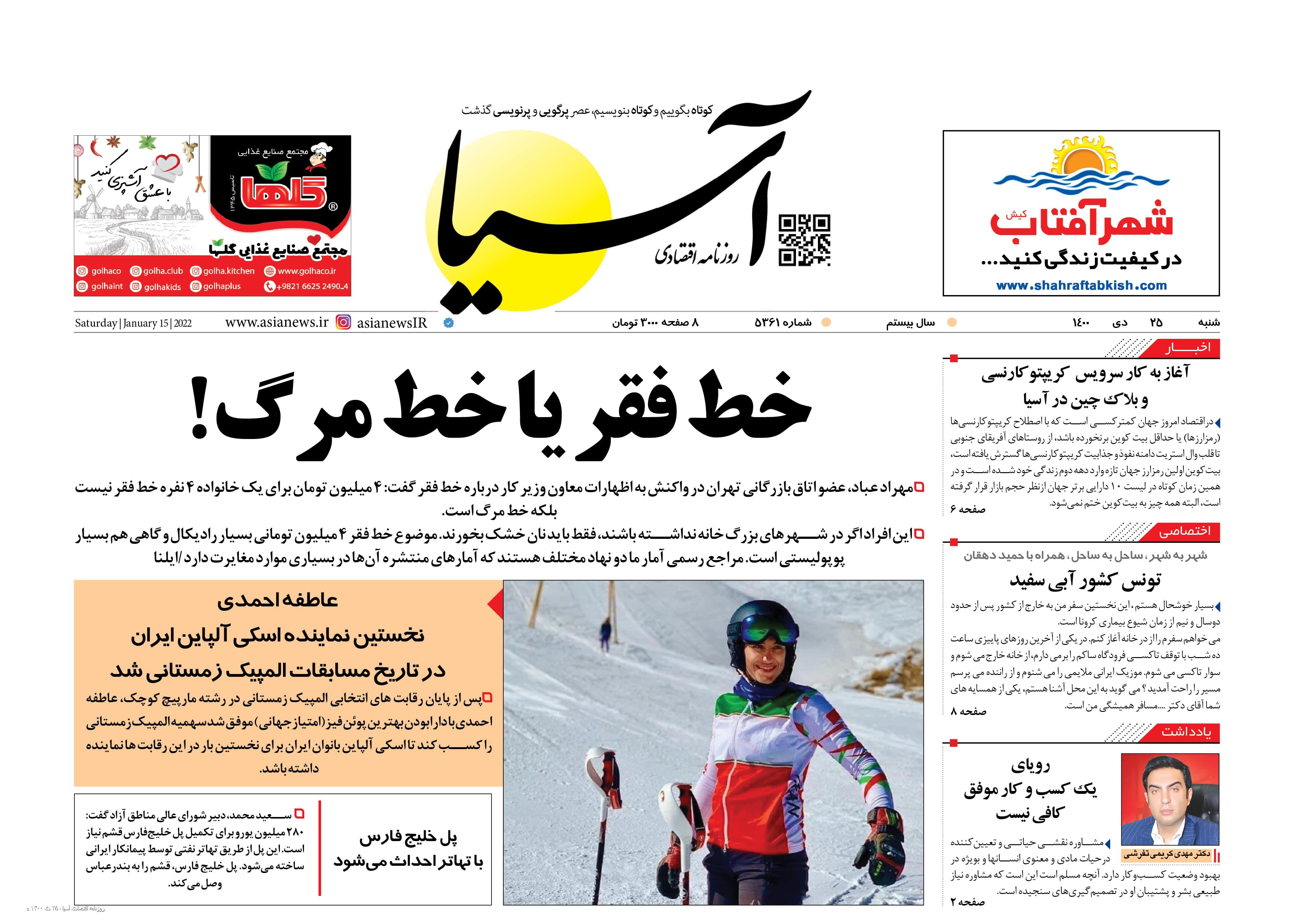 روزنامه اقتصادی آسیا - ۲۵ دی ۱۴۰۰