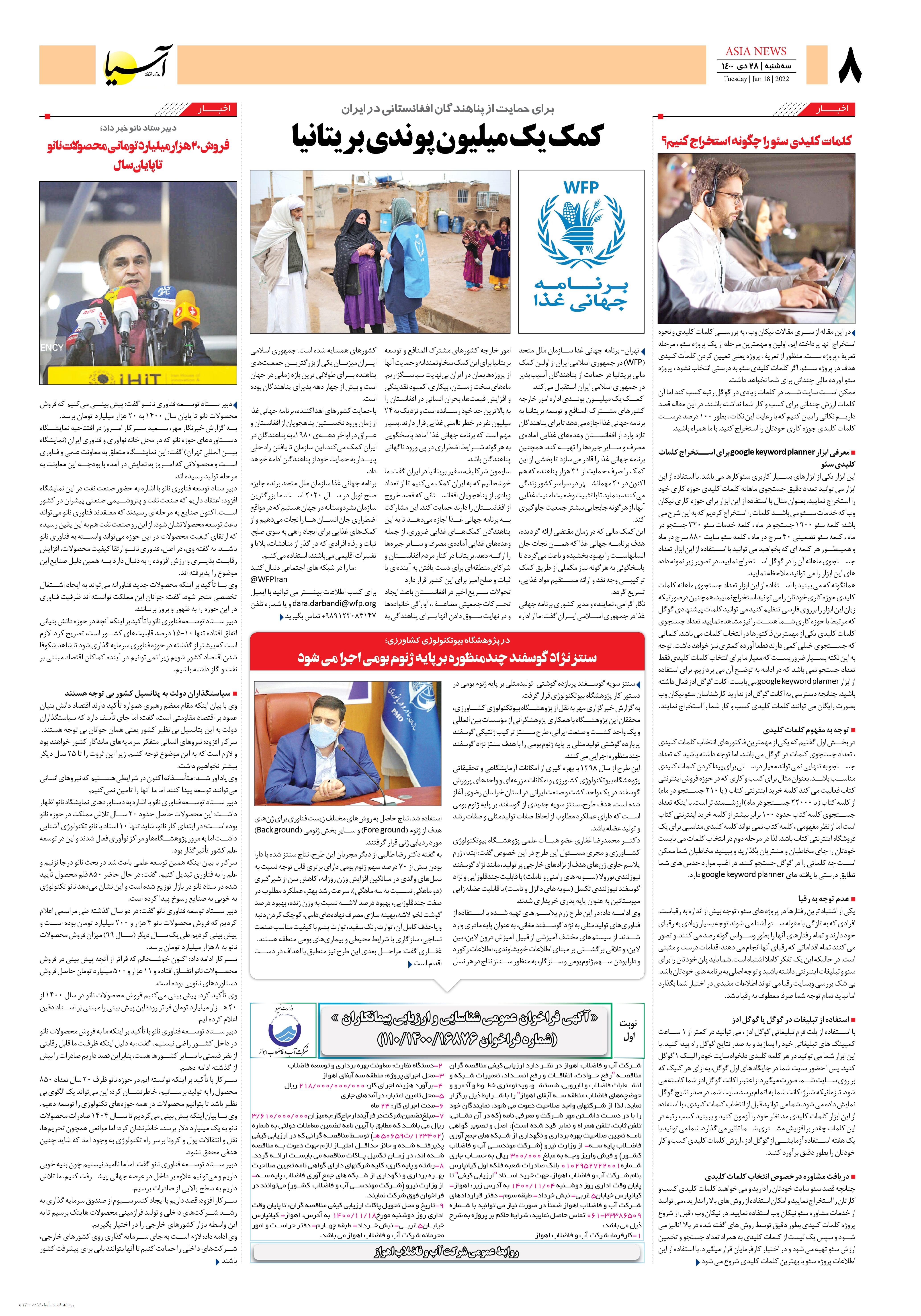 روزنامه اقتصادی آسیا -۲۸ دی ۱۴۰۰
