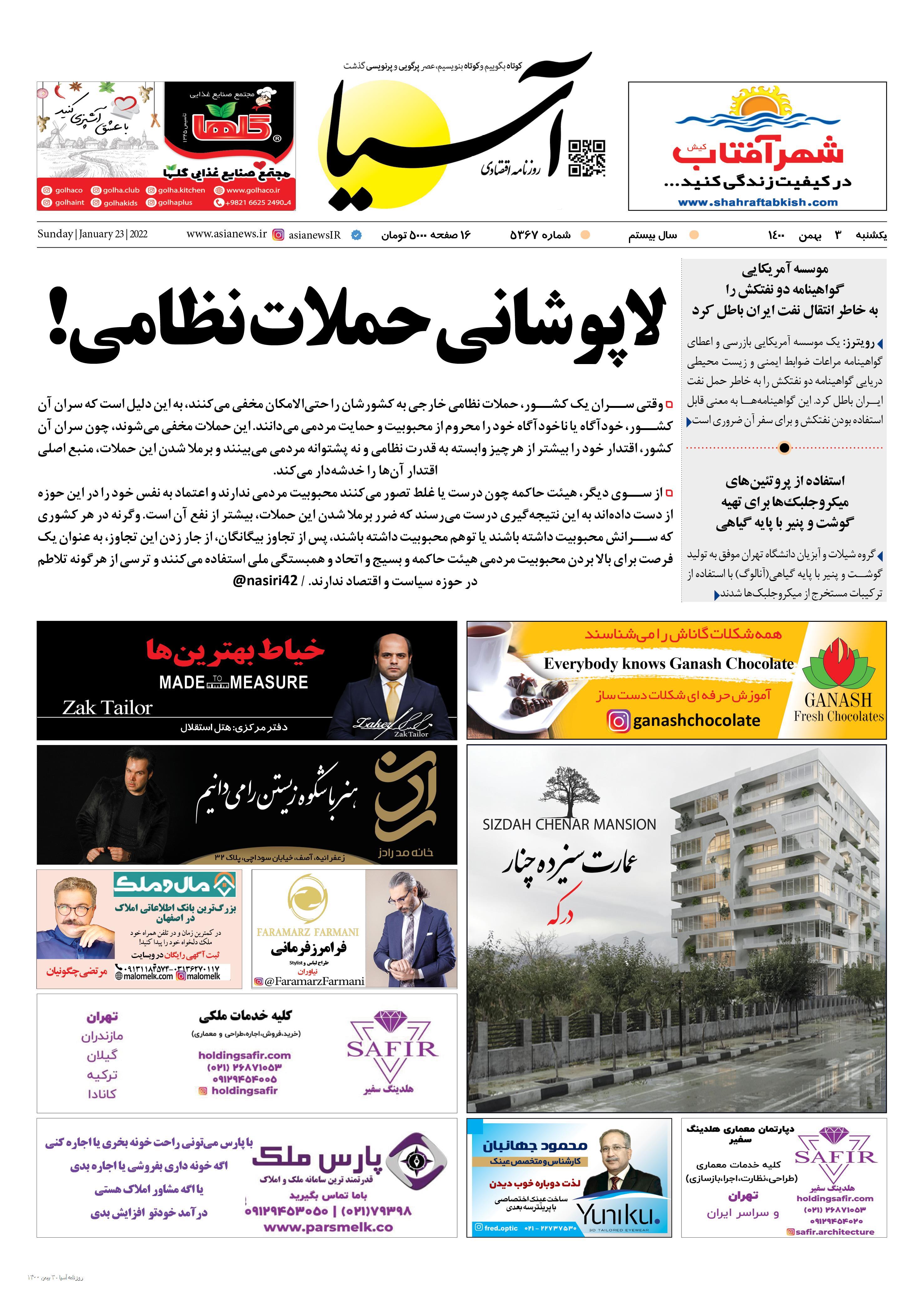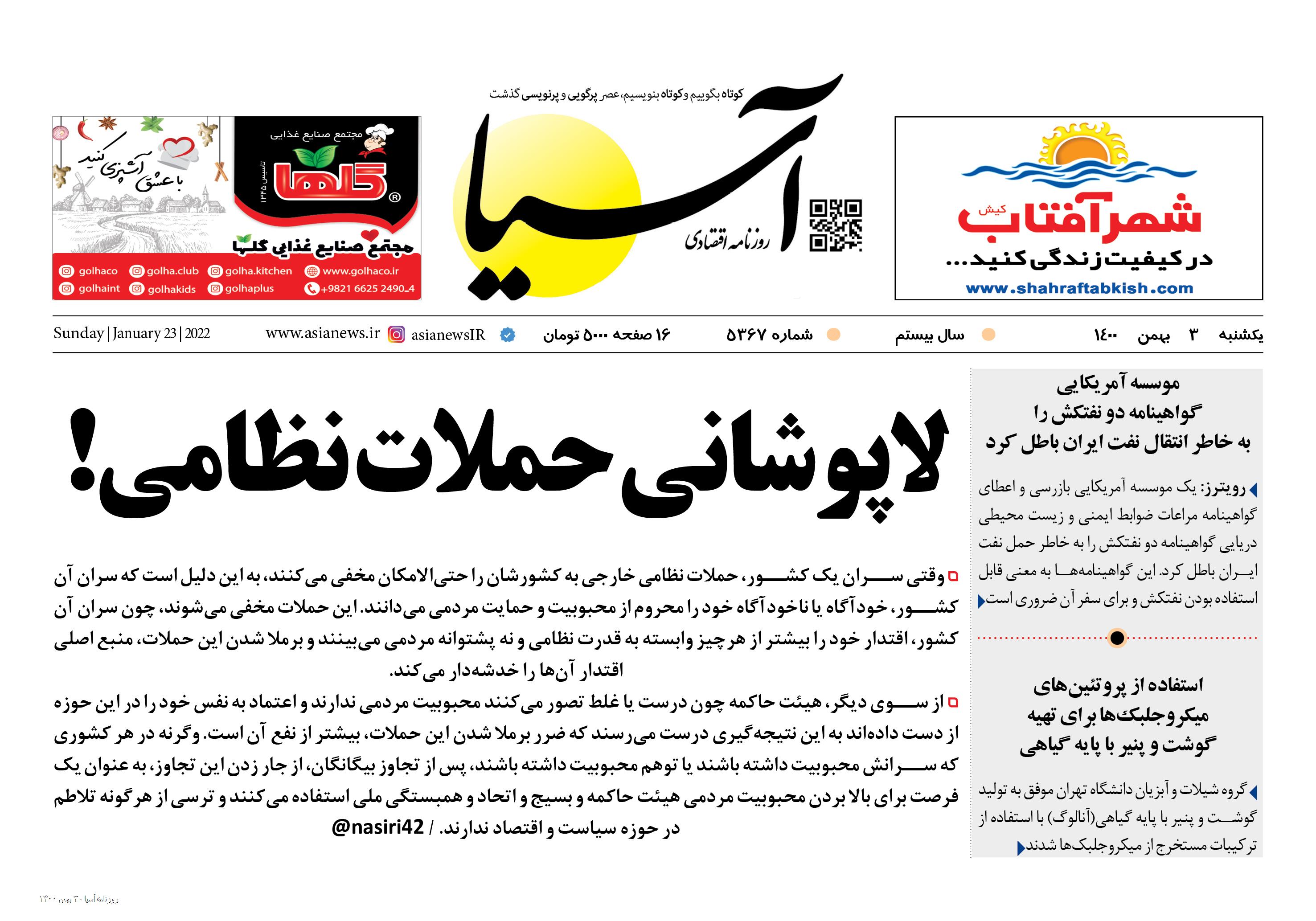 روزنامه اقتصادی آسیا - ۳ بهمن ۱۴۰۰ ۲ بهمن ۱۴۰۰ https://www.asianewsiran.com/u/bw3 آسیانیوز ایران هیچگونه مسولیتی در قبال نظرات کاربران ندارد. میانگین امتیاز کاربران: 0.0 (0 رای) 12345 امتیاز 12345 برای امتیاز باید عدد وارد کنید ایمیل را وارد کنید ایمیل صحیح نیست ایمیل نمایش داده شود. تعداد کاراکتر باقیمانده: 1000 نظر خود را وارد کنید بازخوانی بازخوانی پس از انتشار این نظر، به من اطلاع داده شود. ارسال توجه : نظرات بیان شده در یادداشتهایی که منتشر میکنیم، بیانگر عقیده نگارنده آن است و لزوماً دیدگاه مدیران وبسایت آسیانیوز و آسیانیوز ایران نمیباشد. سردبیر