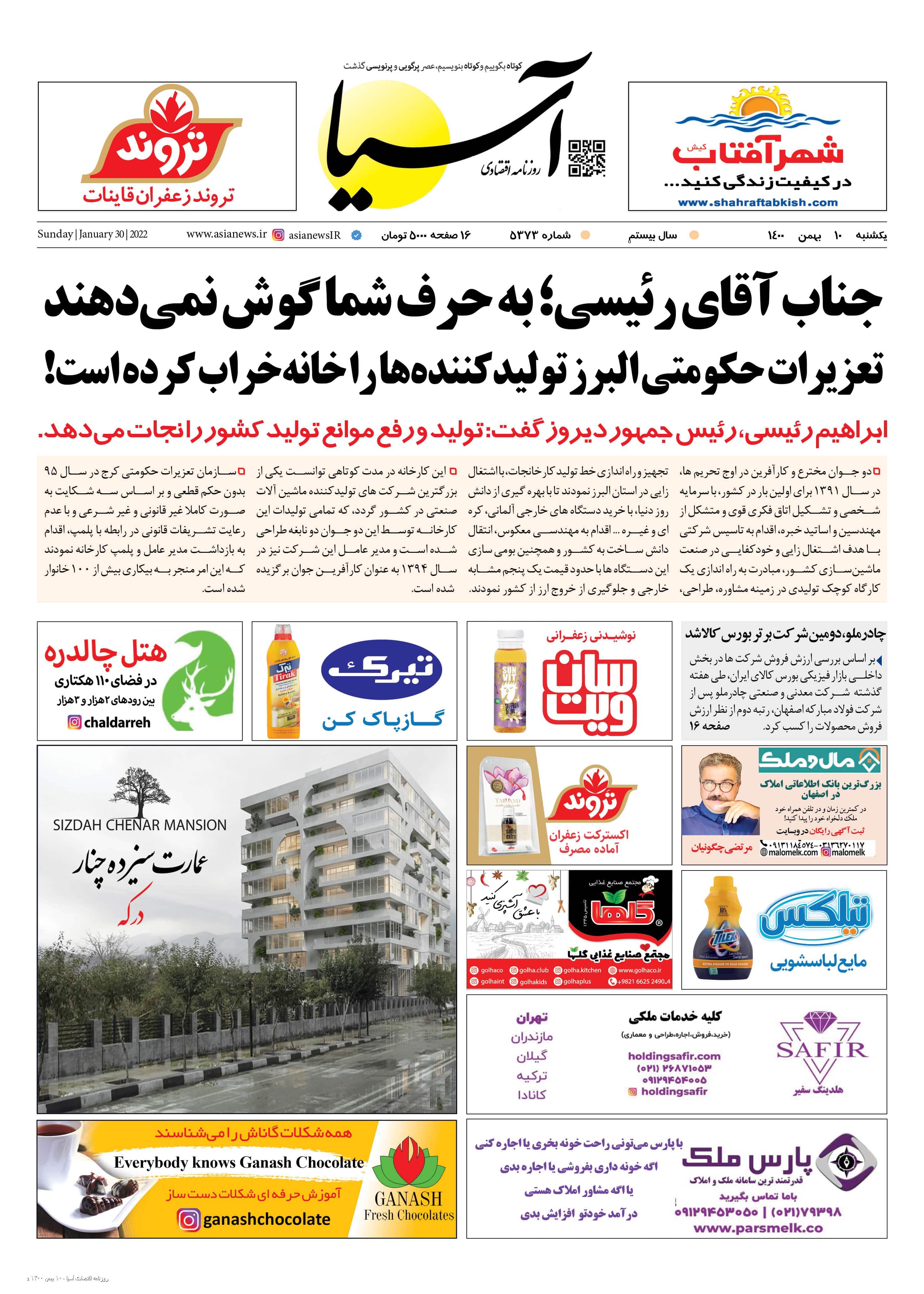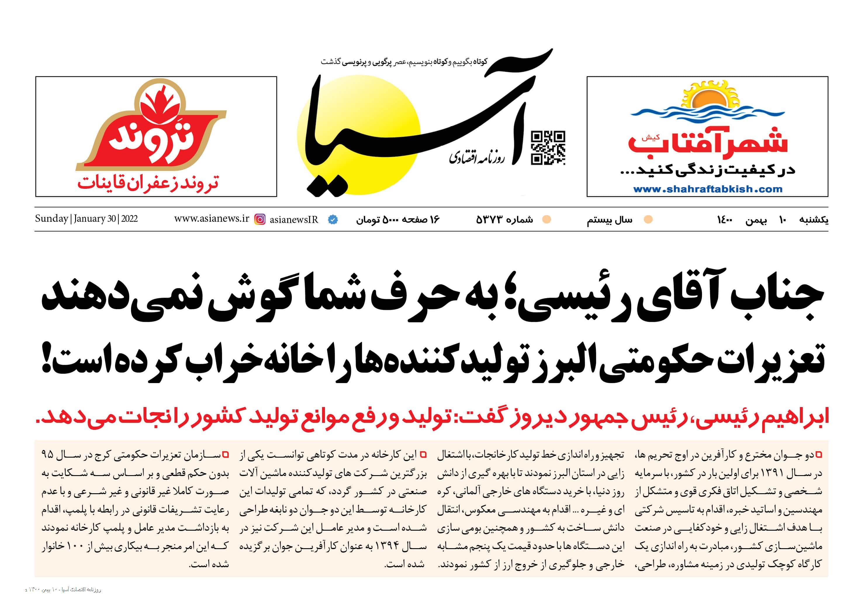 روزنامه اقتصادی آسیا - ۱۰ بهمن ۱۴۰۰