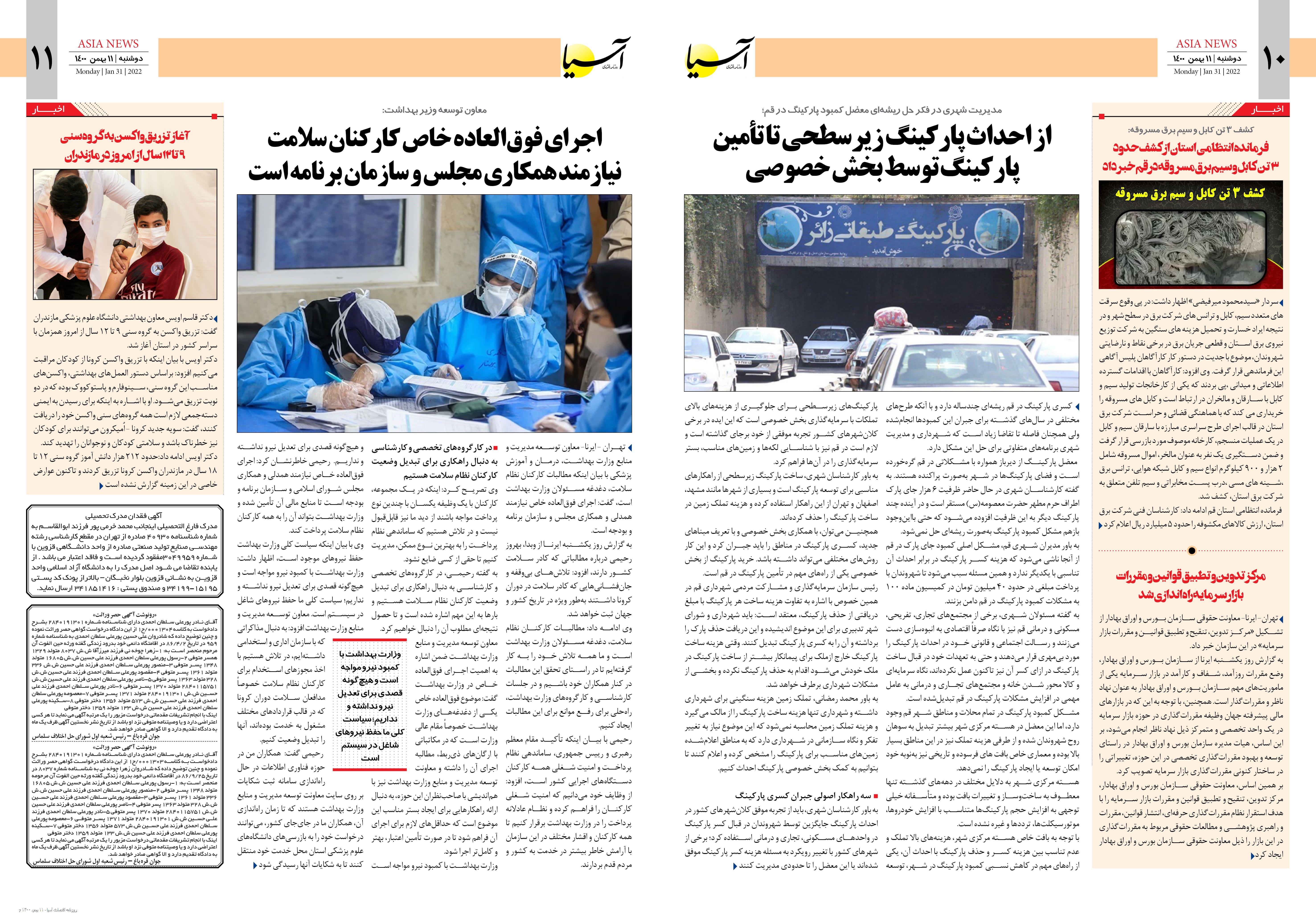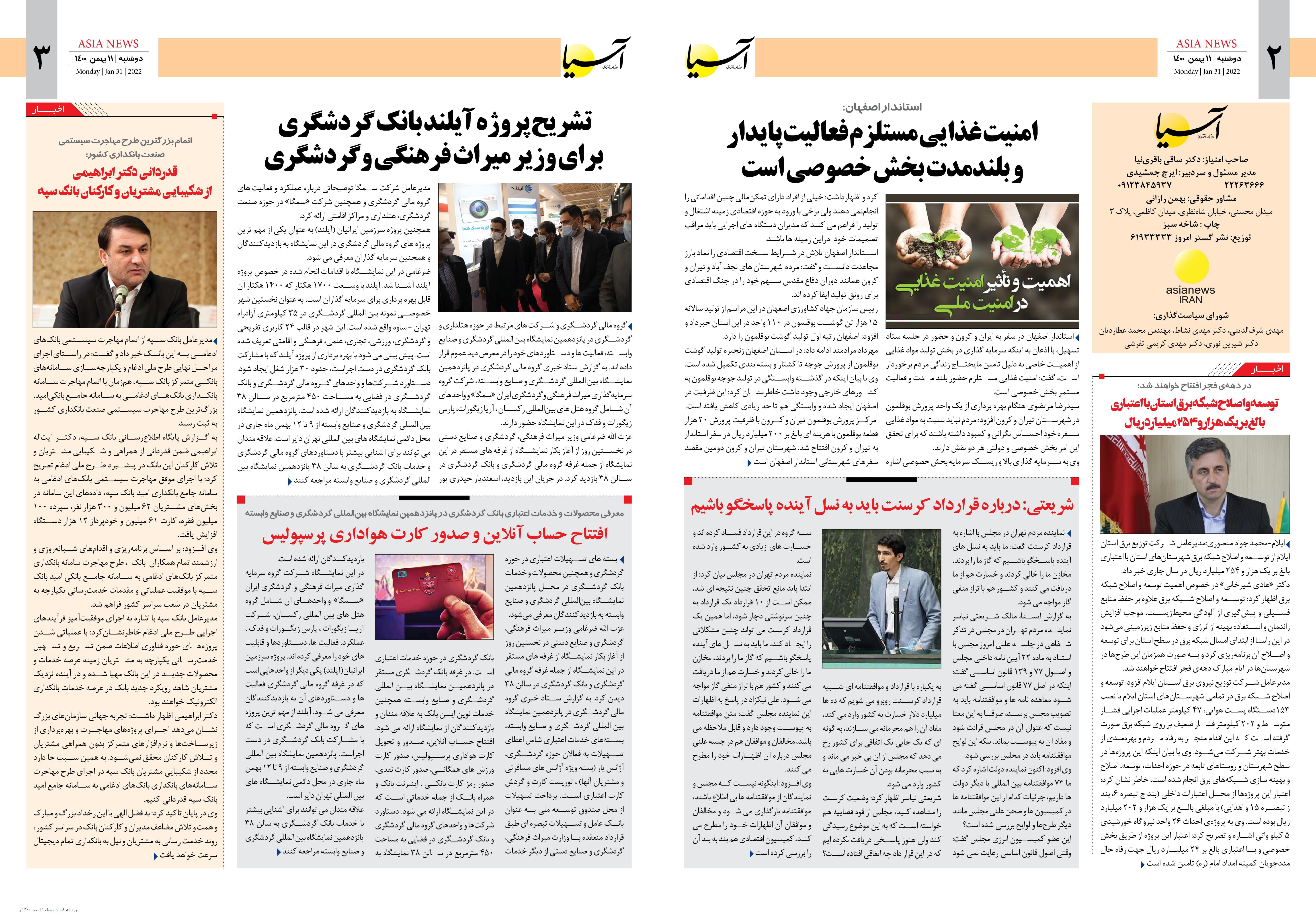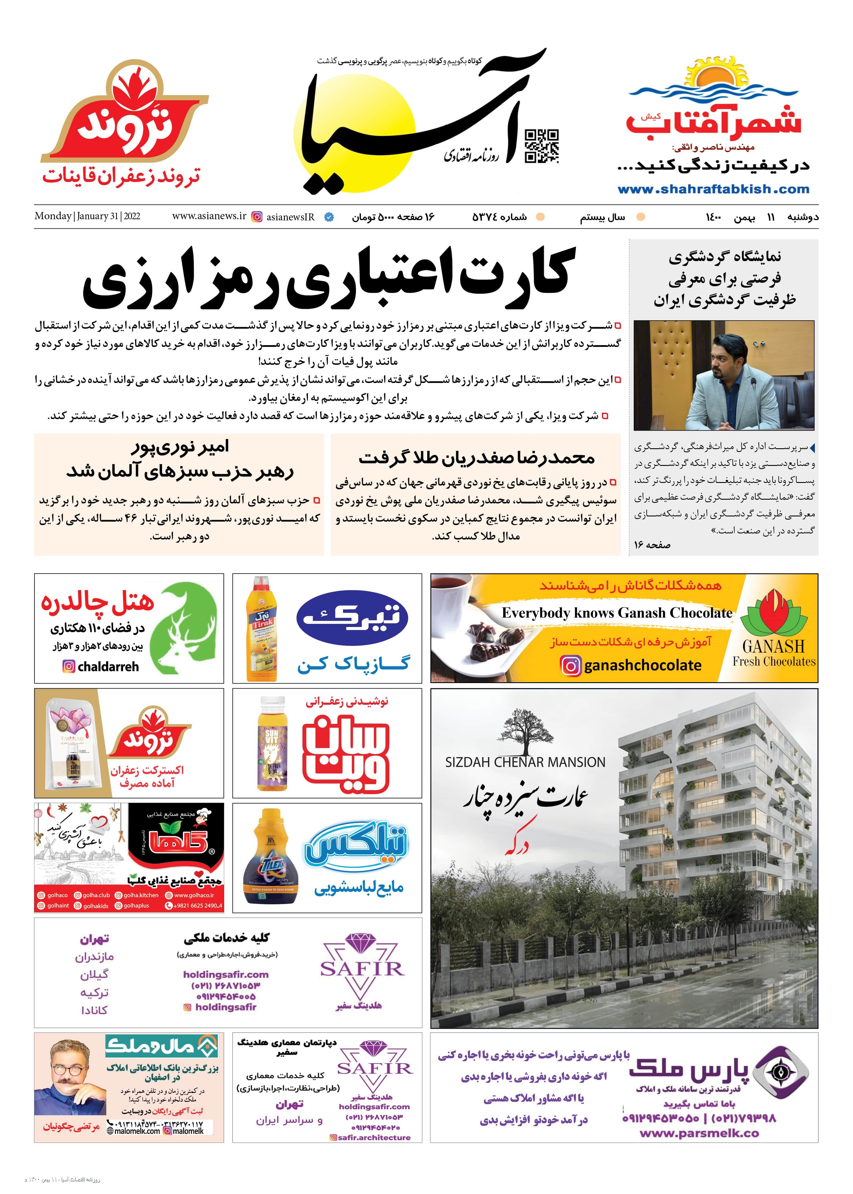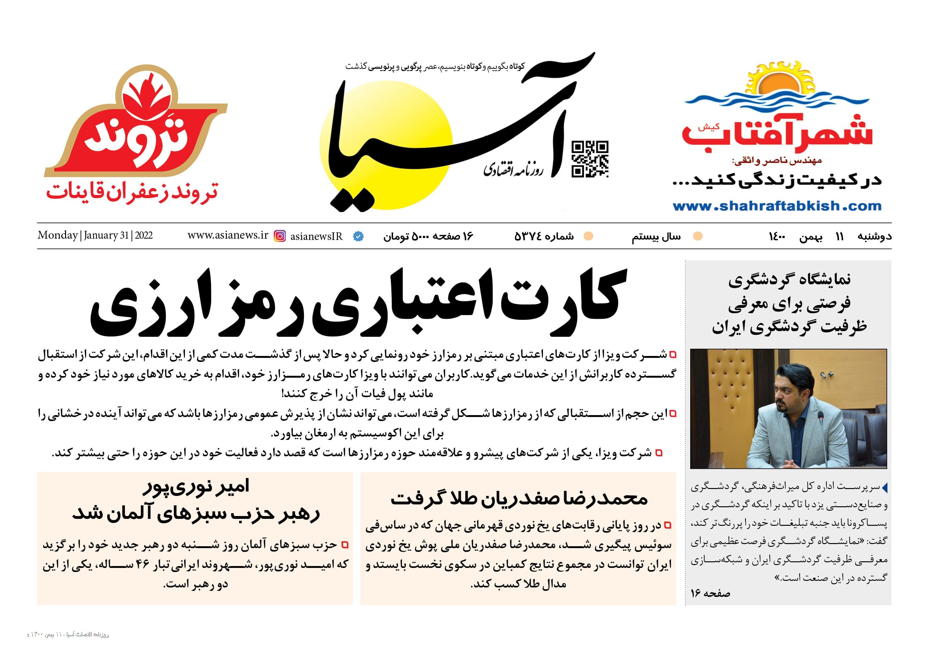 روزنامه اقتصادی آسیا - ۱۱ بهمن ۱۴۰۰