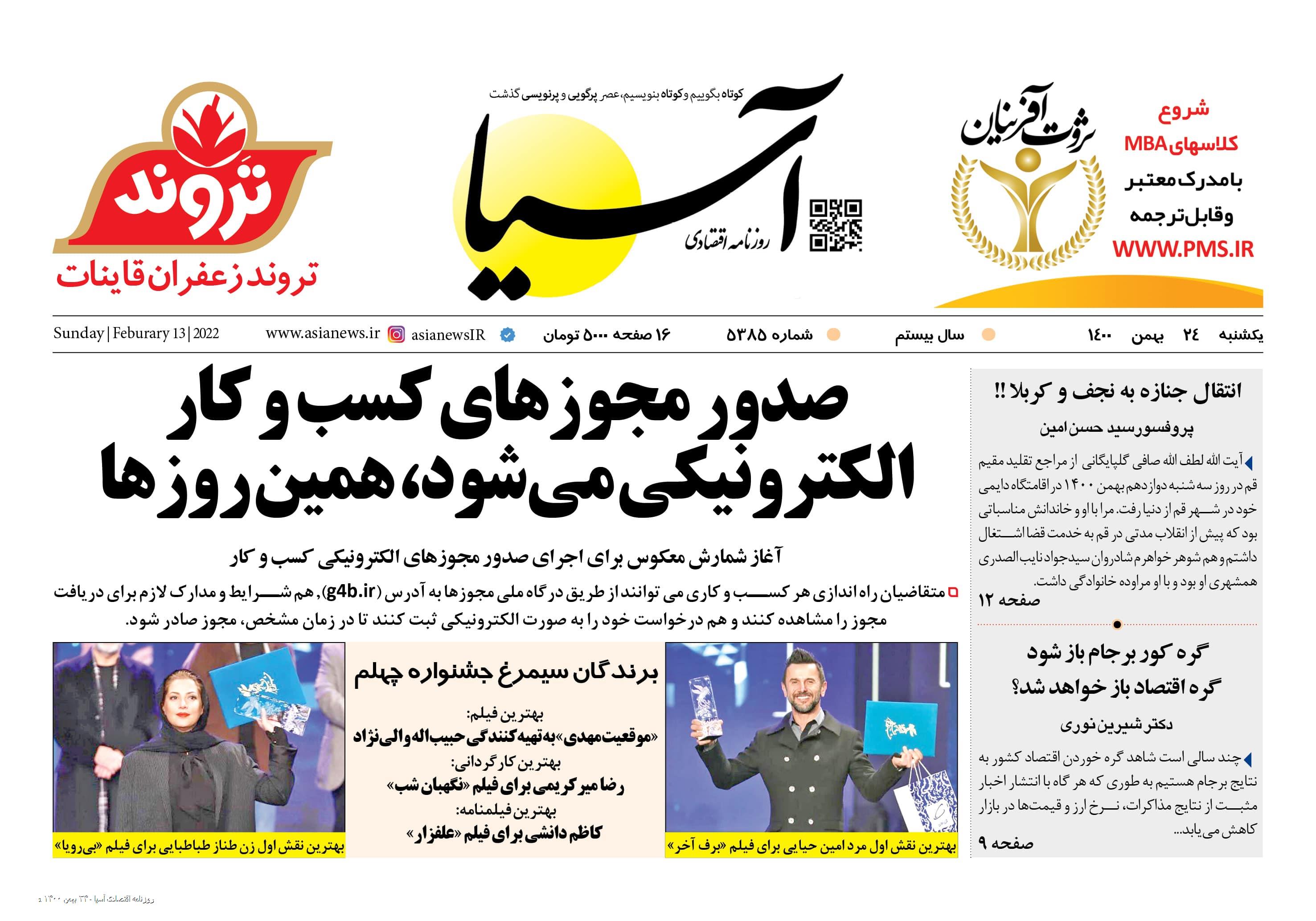 روزنامه اقتصادی آسیا - ۲۴ بهمن ۱۴۰۰ ۲۳ بهمن ۱۴۰۰ https://www.asianewsiran.com/u/cag آسیانیوز ایران هیچگونه مسولیتی در قبال نظرات کاربران ندارد. میانگین امتیاز کاربران: 0.0 (0 رای) 12345 امتیاز 12345 برای امتیاز باید عدد وارد کنید ایمیل را وارد کنید ایمیل صحیح نیست ایمیل نمایش داده شود. تعداد کاراکتر باقیمانده: 1000 نظر خود را وارد کنید بازخوانی بازخوانی پس از انتشار این نظر، به من اطلاع داده شود. ارسال توجه : نظرات بیان شده در یادداشتهایی که منتشر میکنیم، بیانگر عقیده نگارنده آن است و لزوماً دیدگاه مدیران وبسایت آسیانیوز و آسیانیوز ایران نمیباشد. سردبیر