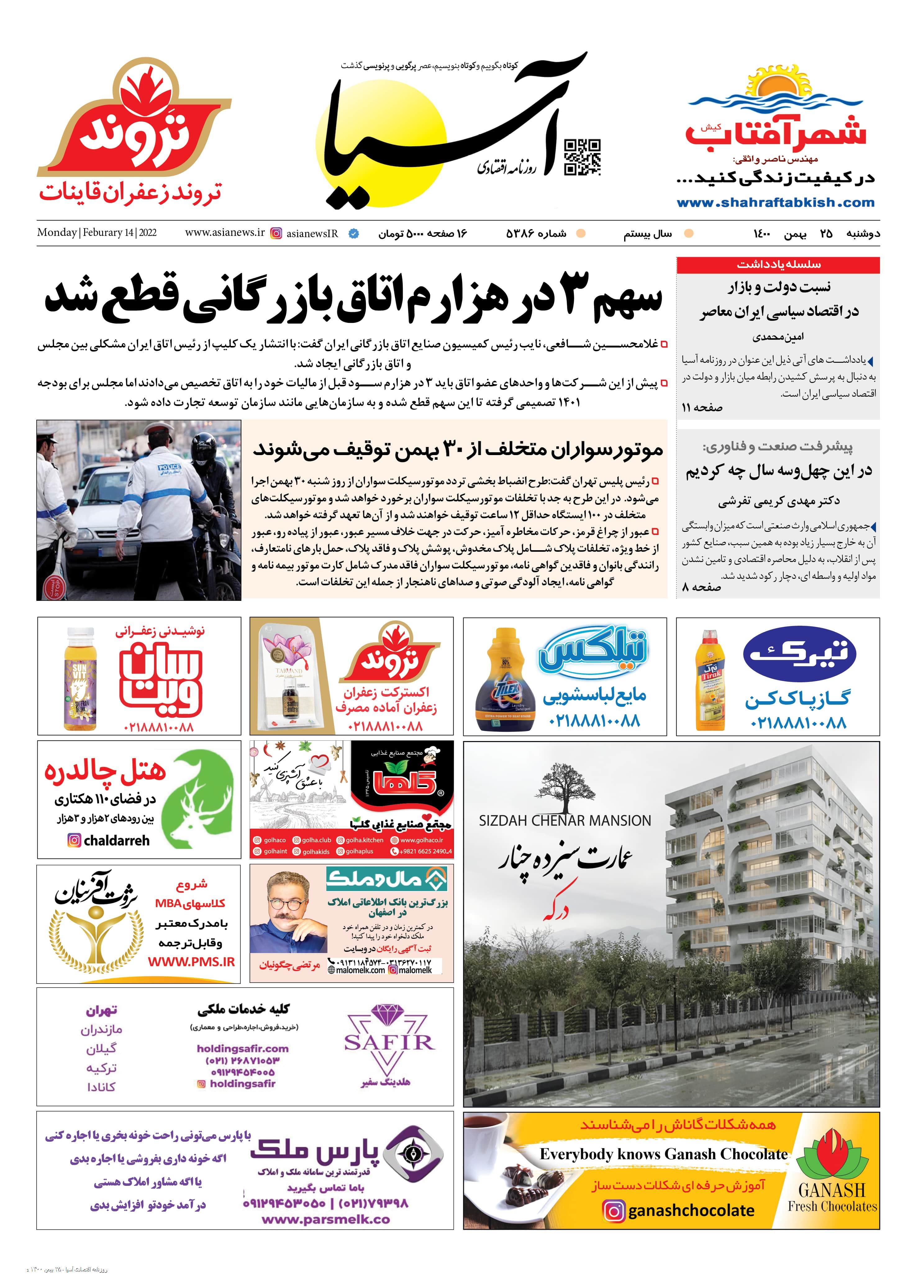 روزنامه اقتصادی آسیا - ۲۵ بهمن ۱۴۰۰ ۲۴ بهمن ۱۴۰۰ https://www.asianewsiran.com/u/c25 آسیانیوز ایران هیچگونه مسولیتی در قبال نظرات کاربران ندارد. میانگین امتیاز کاربران: 0.0 (0 رای) 12345 امتیاز 12345 برای امتیاز باید عدد وارد کنید ایمیل را وارد کنید ایمیل صحیح نیست ایمیل نمایش داده شود. تعداد کاراکتر باقیمانده: 1000 نظر خود را وارد کنید بازخوانی بازخوانی پس از انتشار این نظر، به من اطلاع داده شود. ارسال توجه : نظرات بیان شده در یادداشتهایی که منتشر میکنیم، بیانگر عقیده نگارنده آن است و لزوماً دیدگاه مدیران وبسایت آسیانیوز و آسیانیوز ایران نمیباشد. سردبیر