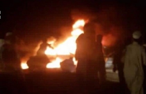 در حادثه برخورد به اصطلاح «شاخ به شاخ» این دو خودرو، ۱۴ نفر در آتش سوختند.