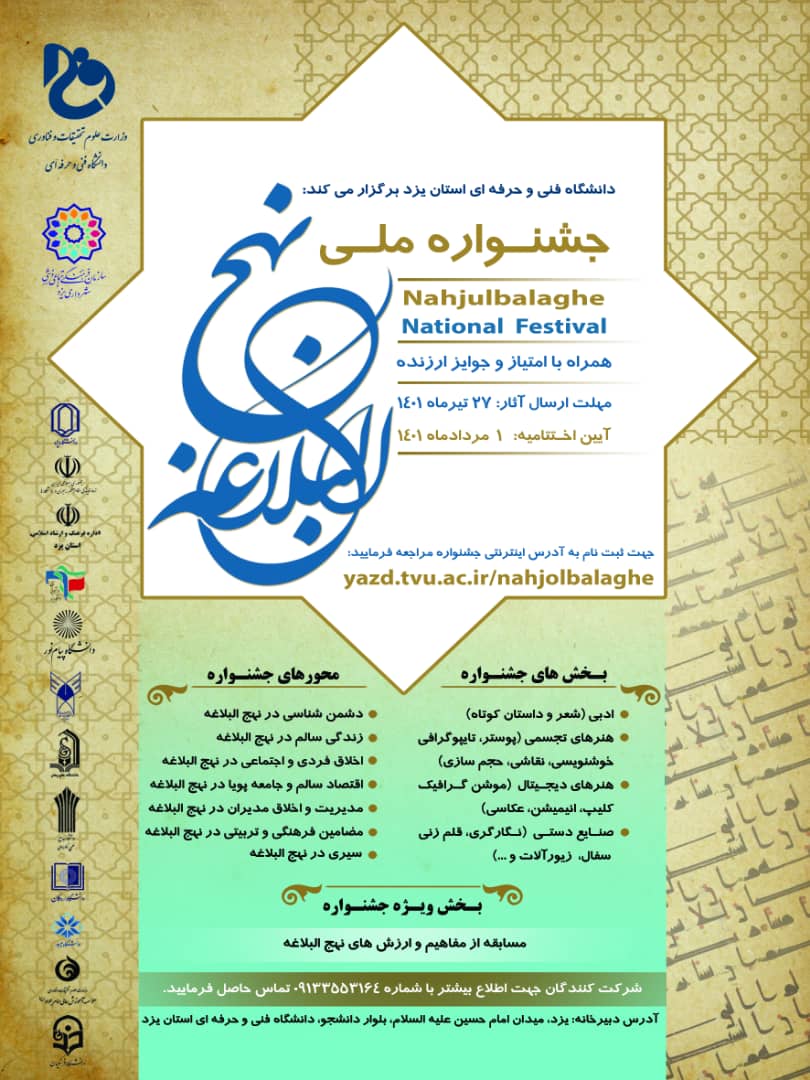 گفتنی است دبیرخانه دبیرخانه جشنواره ملی نهج البلاغه در دانشگاه فنی و حرفه ای استان یزد واقع شده است.