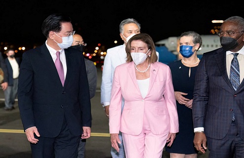 ورود نانسی پلوسی، رئيس مجلس نمایندگان آمریکا به تایوان، واکنش شدید چین را برانگیخت. هواپیماهای جنگی چین با خط میانی تقسیم‌کننده تنگه تایوان برخورد کرده‌اند. وزارت خارجه چین درباره «عواقب جدی» در نتیجه سفر پلوسی به جزیره هشدار داده است. شی جین پینگ، رئیس‌جمهور چین به جو بایدن، رئیس‌جمهور آمریکا گفته است: «کسانی که با آتش بازی می‌کنند، از بین خواهند رفت.»