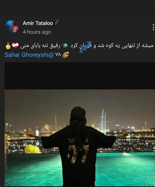 به گزارش آسیانیوز، امیر تتلو با انتشار عکسی از سحر قریشی در دبی نوشت: میشه از تنهایی یه کوه شد و فوران کرد!