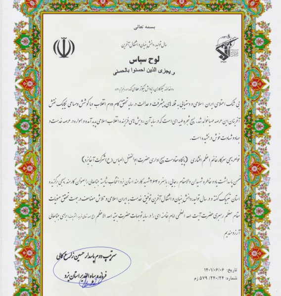 آسیانیوز / یزد ؛ در بخشی از این حکم چنینی آمده است: