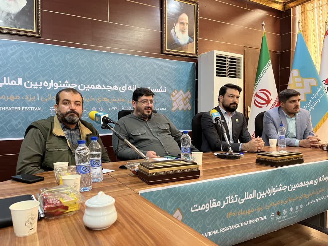 تئاتر مقاومت در یزد احسان عابدی مدیر کل فرهنگ و ارشاد اسلامی استان یزد، سید وحید فخر موسوی دبیر هیجدهمین جشنواره بینالمللی
