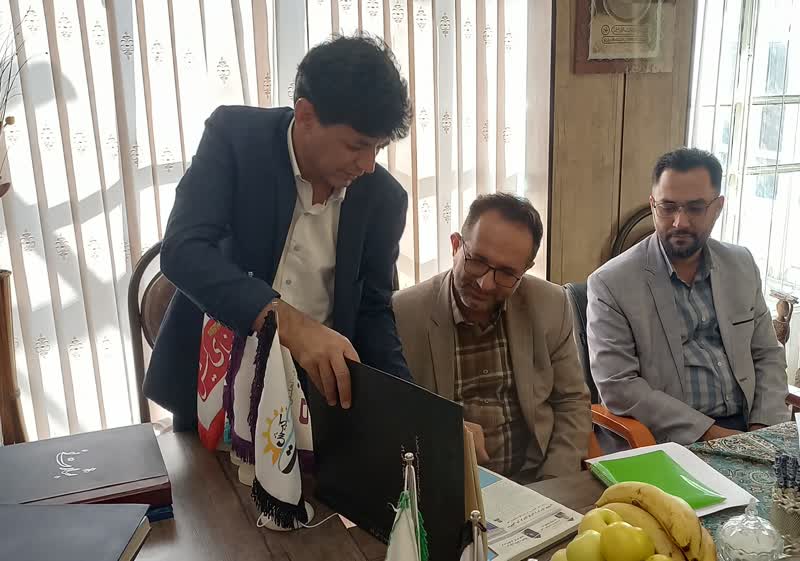 اسناد و کتابخانه ی ملی استان یزد با مسئولین روزنامه ی بشارت نو ، سعید زارع مدیر مرکز اسناد و کتابخانه ی ملی استان یزد با
