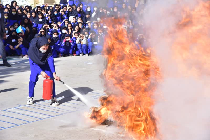 نحوه پناه گیری در کلاس و محوطه، حملو انتقال مصدوم، مداوا، اطفای حریق و ...  از نکات آموزشی در این مانور بود که به دانش آموزان آموزش داده شد.