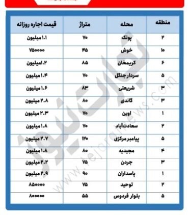 به گزارش آسیانیوز، مدتی است زیرمجموعه جدیدی به نام «اجاره کوتاهمدت» یا «اجاره روزانه» به فایلهای اجاره مسکن تهران افزوده شده است. فایلهایی که توانستهاند مشتریانی با اهداف و سلایق متفاوت را جذب کنند. با این حال بررسیها حاکی از قیمت بالای این نوع فایلهاست.