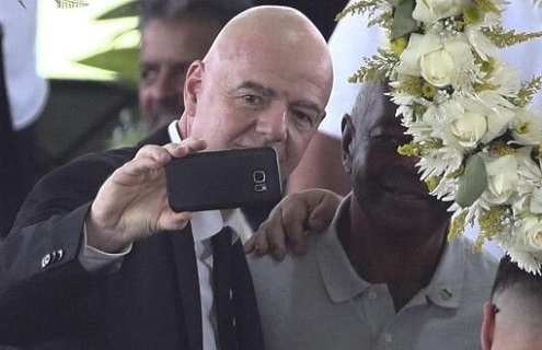 جیانی اینفانتینو در مراسم خداحافظی پله در ورزشگاه ویلا بلمیرو در سانتوس (برزیل) شرکت کرد و گرفتن عکس سلفی در کنار تابوت پله برای او حواشی زیادی داشت.