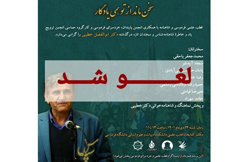 مراسم گرامیداشت ابوالفضل خطیبی، شاهنامهپژوه برجسته که قرار بود روز شنبه برگزار شود، لغو شده و به تعویق افتاد.