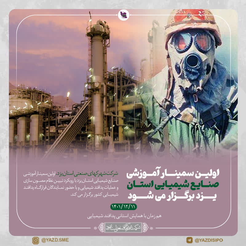 این دوره چهارساعته آموزشی ویژه مدیران و کارشناسان دستگاه های اجرایی و خدمات رسان در مقابله با حوادث شیمیایی و صاحبان و کارکنان صنایع شیمیایی و وابسته است و علاقه مندان می توانند روز پنجشنبه 11 اسفند ماه از ساعت صبح8 تا 12 ظهر در محل سالن اجتماعات مرکز خدمات فناوری و کسب وکار واقع در شهرک صنعتی یزد به صورت رایگان در این دوره حضور یابند.