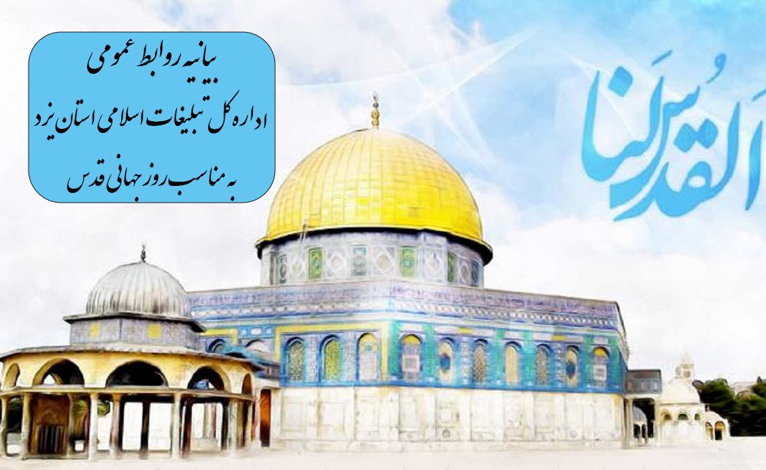 یزد - روابط عمومی اداره کل تبلیغات اسلامی استان در بیانیه ای از عموم مردم شریف استان برای شرکت در راهپیمایی روز جهانی قدس در آخرین جمعه از ماه مبارک رمضان در روز ۲۵ فروردین ۱۴۰۲ دعوت به عمل آورد