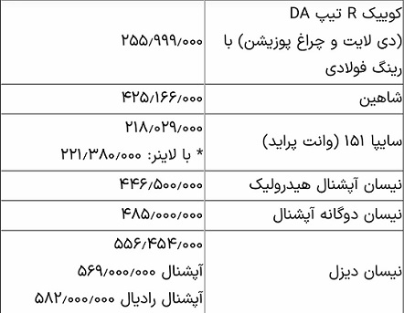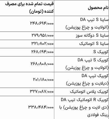 قیمت های ذیل در قالب دعوتنامه تسویه حساب برای مشتریانی که قبلا این محصولات را پیش خرید کرده بودند، صادر خواهد شد.