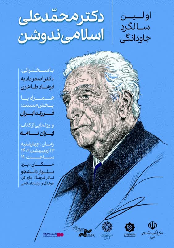 آسیانیوز / یزد ؛  مراسم اولین سالگرد درگذشت دکتر اسلامی ندوشن با همکاری اداره کل فرهنگ و ارشاد اسلامی استان یزد، سازمان فرهنگی اجتماعی ورزشی شهرداری یزد، مرکز گسترش سینمای مستند تجربی و پویانمایی و موسسه اندیشه روشن در روزهای چهارشنبه ۱۳ و پنجشنبه ۱۴ اردیبهشت در شهر یزد و شهر ندوشن زادگاه این استاد فقید برگزار می‌گردد. احسان عابدی افزود: مستند 70 دقیقه ای فرزند ایران کاری از مرکز گسترش سینمای مستند تجربی و پویانمایی است که قرار است در این مراسم رونمایی شود. وی افزود: کتاب ایران نامه نیز که گزیده دیدگاه‌های مرحوم اسلامی ندوشن درباره ایران است و به خط استاد امیرخانی و استاد محمود رهبران از خوشنویسان برجسته کشور کتابت شده در این مراسم رونمایی می شود. عابدی در پایان اشاره کرد در این مراسم دکتر اصغر دادبه و دیگر سخنرانان درباره شخصیت دکتر اسلامی ندوشن صحبت خواهند کرد. شایان ذکر است این مراسم در روز چهارشنبه ۱۳ اردیبهشت در تالار فرهنگ اداره کل فرهنگ و ارشاد اسلامی استان یزد از ساعت 19 برگزار می‌شود. همچنین روز پنجشنبه در شهر ندوشن مراسمی برای گرامیداشت ایشان برگزار خواهد شد.