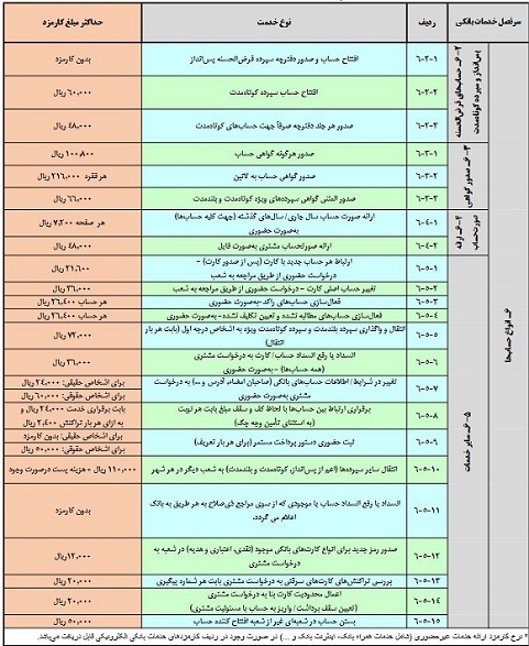 انسداد یا رفع انسداد حساب یا موجودی که از سوی مراجع ذیصلاح به هر طریق به بانک اعلام میشود نیز کارمزدی ندارد./