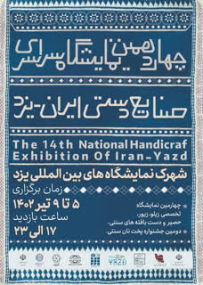 چهاردهمین نمایشگاه ملی صنایعدستی استان یزد، چهارمین نمایشگاه تخصصی زیلو، زیور، حصیر و دست بافتههای سنتی و دومین جشنواره پخت نان سنتی از 5 تا 9 تیرماه در محل شهرک نمایشگاههای بینالمللی یزد برپا میشود.
