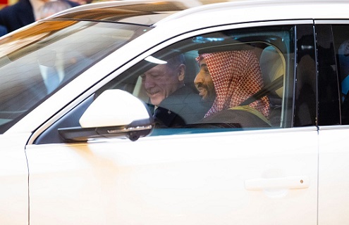 محمد بن سلمان ولیعهد هم پشت فرمان خودروی توگ نشست و اردوغان را تا محل اقامتش رساند.