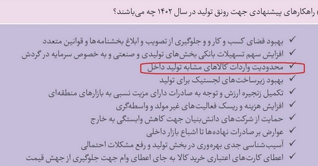 ضمن تشکر از تهیه کنندگان این گزارش که وضعیت اقتصاد ایران را به روشنی توضیح می دهد؛ در بخش "د" این گزارش، با عنوان «راهکارهای پیشنهادی جهت رونق تولید در سال 1402» موردی دیده می شود که من را یاد لطیفه ای انداخت.