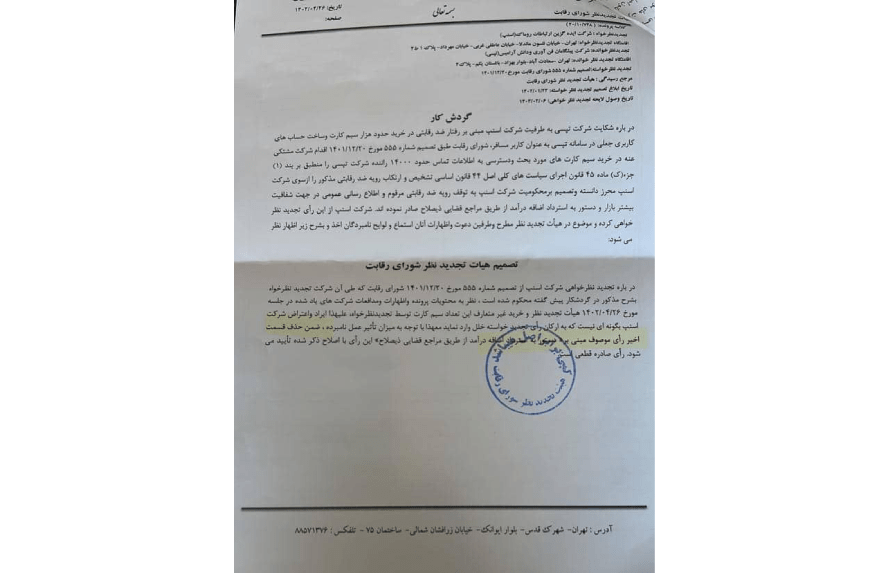 از آنجایی که بخشی از رای تجدید نظر همچنان بر رفتار ضدرقابتی اسنپ تاکید دارد، ضمن احترام به رای شورای رقابت، این حق را برای خود محفوظ میدانیم که اعتراض خود را به این بخش از رای به دیوان عدالت اداری ببریم. با استناد به رای تجدید نظر و عدم تایید پرداخت خسارت، مبرهن است که سند سیمکارتهای مذکور به نام شرکت اسنپ بوده و در تحقیقات بازار مورد استفاده قرار گرفته است. اقدامات شرکت اسنپ در مسیر تحقیقات بازار کاملاً با رویکرد علمی و حرفهای انجام شده و برای اهل فن روشن است که مرزبندی شفافی بین تحقیقات بازار و عمل ضدرقابتی وجود دارد.