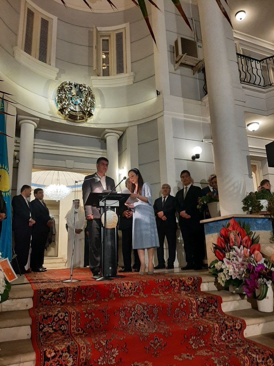 در ادامه مراسم، هوشنگ محمدی، معاون وزیر جهاد کشاورزی به سخنرانی پرداخت و ضمن تبریک این روز از کلیه نمایندگان دستگاهای ایرانی و قزاقستانی که در جهت بهبود روابط دو کشور تلاش کرده اند، قدردانی کرد. وی افزود: «قزاقستان کشوری است که در طول این سی سال بعد از استقلال گامهای مهمی را در جهت توسعه و پیشرفت همهجانبه و تأمین رفاه وامنیت شهروندان خود برداشته است. ابتکارات جمهوری قزاقستان در سه دهه گشته در چهارچوب ساختارهای منطقهای و بینالمللی از جمله سازمان شانگای و سازمان همکاریهای اسلامی اکو بیانگراهتمام و توجه مقامات این کشور به تحولات جهانی است. این دو کشور همواره در جهت ارتقا سطح همکاریها در حوزههای سیاسی اقتصادی فرهنگی و در راستای منافع متقابل تلاشهای بیوفقهای داشتهاند که البته با توجه به ظرفیتهای عظیم این دو کشوراز نقطه مطلوب فاصله زیادی داریم.»