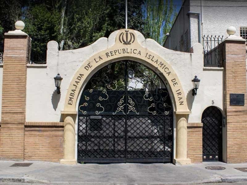 سفارت ایران در پیش از انقلاب تا به امروز، در ساختمان زیبا و باغچه دار خیابان "خرز" محله ی "پلازا کاستیا" است. نام یک شراب پرآوازه اسپانیا نیز "خرز" می باشد که این محصول در جهان و قاره اروپا خریدار بسیار دارد . آنجا خانه ی شخصی سرلشکر جم بود که تا به امروز نیز سفارت جمهوری اسلامی ایران است. پیش از انقلاب تلاش فرهنگی سفارت ایران در مادرید بیشتر از تبلیغات پس از انقلاب بود.