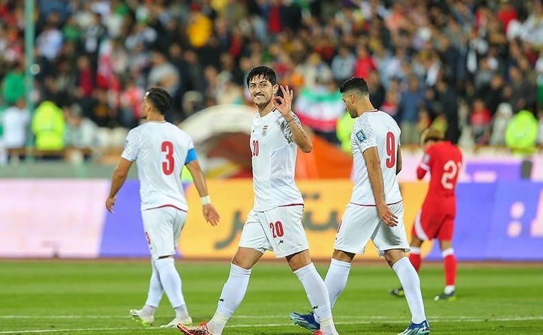 گل دوم ایران (۱۵)(سردار آزمون): نفوذ طارمی و سانتر زمینی او از سمت چپ به آزمون رسید و این مهاجم تیم ملی توانست دروازه را باز کند و اختلاف را به دو گل برساند.