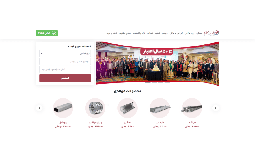 به جرات میتوان از مجموعه پیوان به عنوان یک رقیب جدی برای تمامی بازرگانیهای فولاد و فروش میلگرد در ایران نام برد. این مجموعه با مدیریت بسیار خوب، از طریق سایت خود قیمت میلگرد، تیرآهن، ورق آهن، انواع محصولات مفتولی و قوطی پروفیل را به صورت لحظهای برای مشتریان و بازدیدکنندگان عمومی در دسترس قرار میدهد. خرید آنلاین آهن آلات از برجستهترین خدمات سایت پیوان است که بر خلاف روند پیچیده این موضوع در سایر بازرگانیهای فولادی، روندی ساده و تسهیلشده دارد.