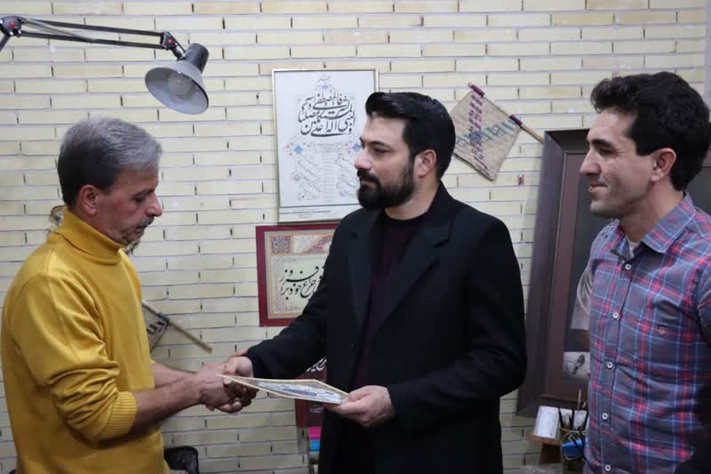 و ارشاد اسلامی به اتفاق سالکی، رئیس حوزه هنری یزد و برخی از هنرمندان با حضور در منزل استاد محمود رهبران با اهدا لوح