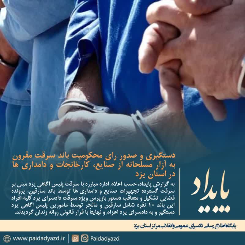 باند سرقت مقرون به آزار مسلحانه از صنایع، کارخانجات و دامداری ها در یزد