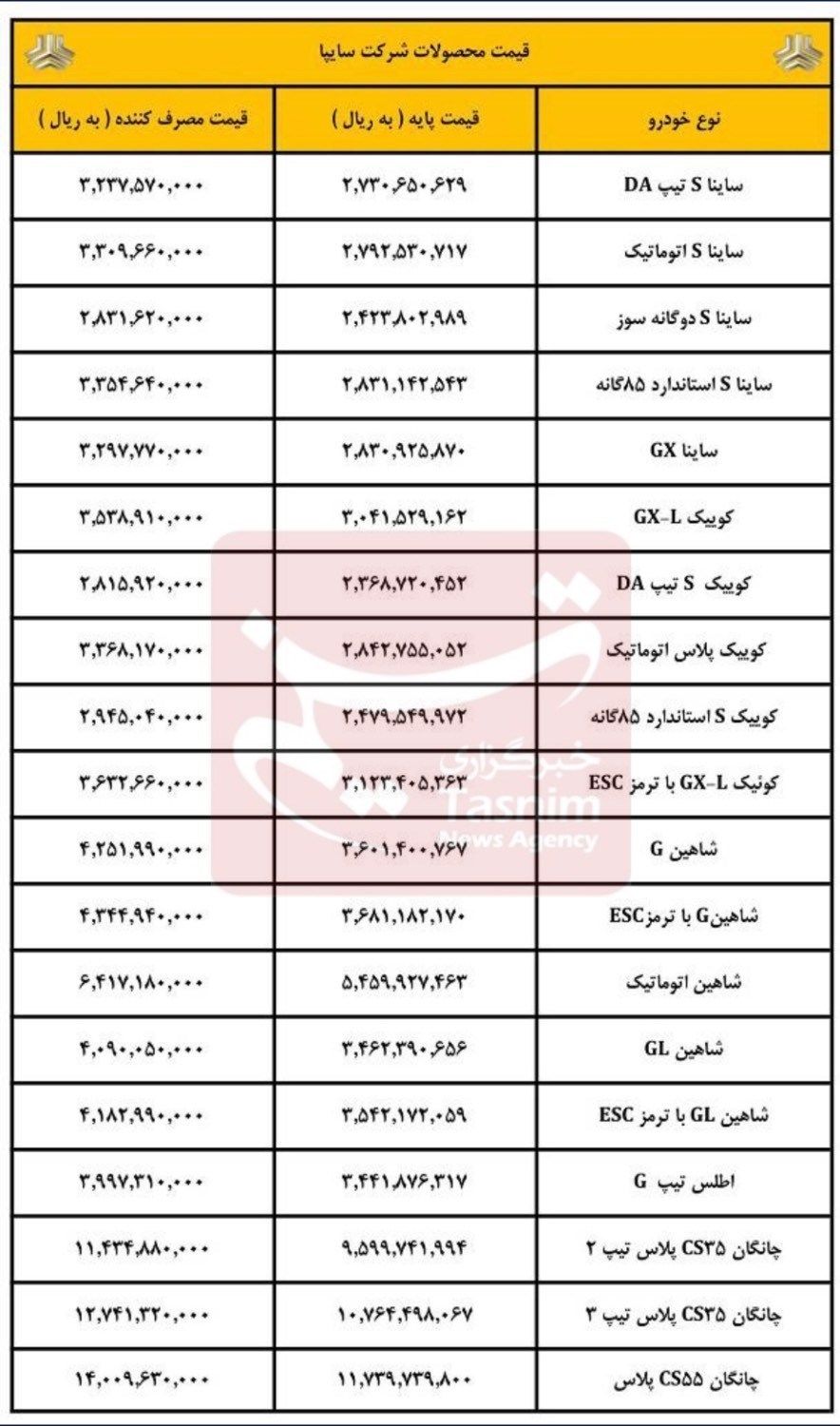 قیمت کارخانه ای کلیه محصولات سایپا ویژه اسفندماه ۱۴۰۲ از سوی این شرکت اعلام شد.