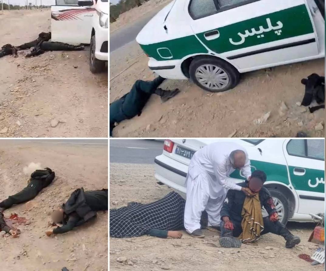 ویدئویی از خودروهای نیروهای انتظامی که مورد حمله تروریستی در منطقه شهرستان سیب و سوران سیستان و بلوچستان قرار گرفته اند