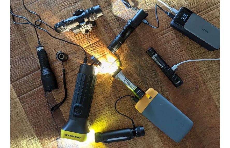 باتری های قابل شارژ: اکثر چراغ قوه ها با باتری های لیتیوم یون قابل شارژ عرضه می شوند. می توانید چراغ قوه را با وصل کردن آن به پریز برق شارژ کنید. برخی از چراغ قوه ها از طریق کابل USB قابل شارژ هستند. چراغ قوه های شارژی در درازمدت مقرون به صرفه تر هستند زیرا مجبور نیستید برای باتری های جدید هزینه کنید.