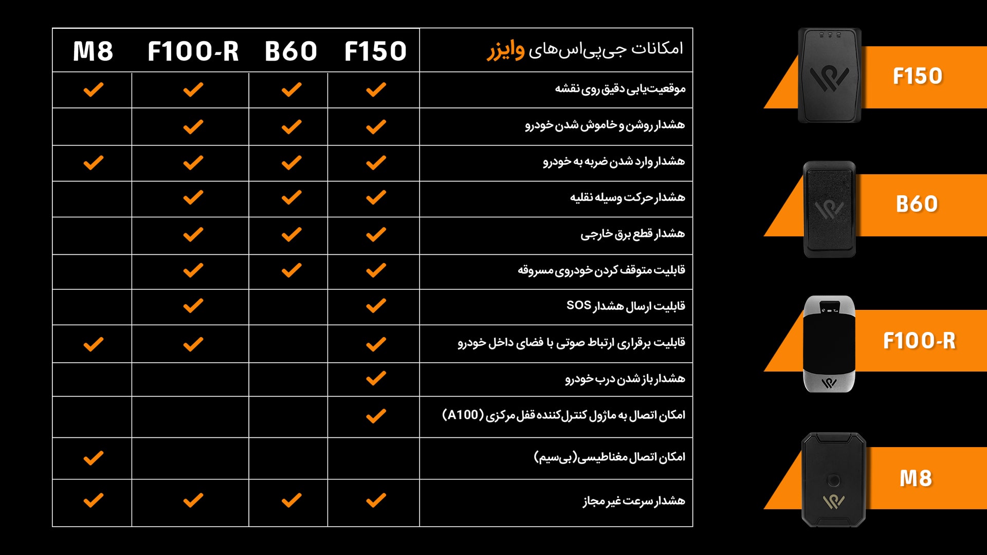 بهترین ردیاب خودرو در ایران توسط وایزر در ۴ مدل زیر ارائه میشوند: