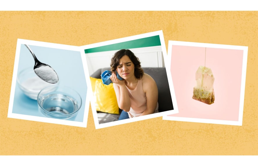 با مخلوط کردن ۱/۲ قاشق چایخوری نمک در ۸ اونس آب گرم، یک دهانشویه درست کنید. از این محلول برای غرغره کردن به مدت ۳۰ ثانیه استفاده کنید و سپس آن را بیرون بریزید.