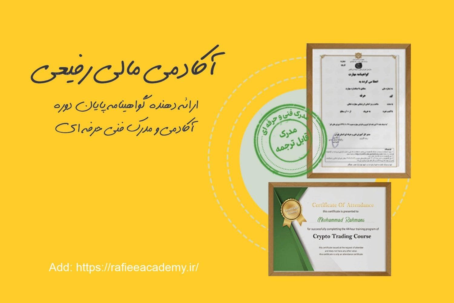 - گواهینامه پایان دوره آکادمی مالی رفیعی و مدرک فنی حرفهای به شما اعطا میکنند