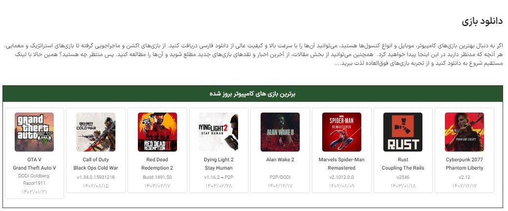 بازیهای ویدئویی یکی از محبوبترین سرگرمیها در دنیای دیجیتال هستند. سایت دانلود فارسی با ارائه جدیدترین و بهترین بازیها، تجربهای بینظیر را برای کاربران فراهم میکند. این سایت با بروزرسانی مداوم و ارائهی بازیها متنوع، به یکی از منابع معتبر و محبوب برای دانلود بازیهای ویدئویی تبدیل شده است.
